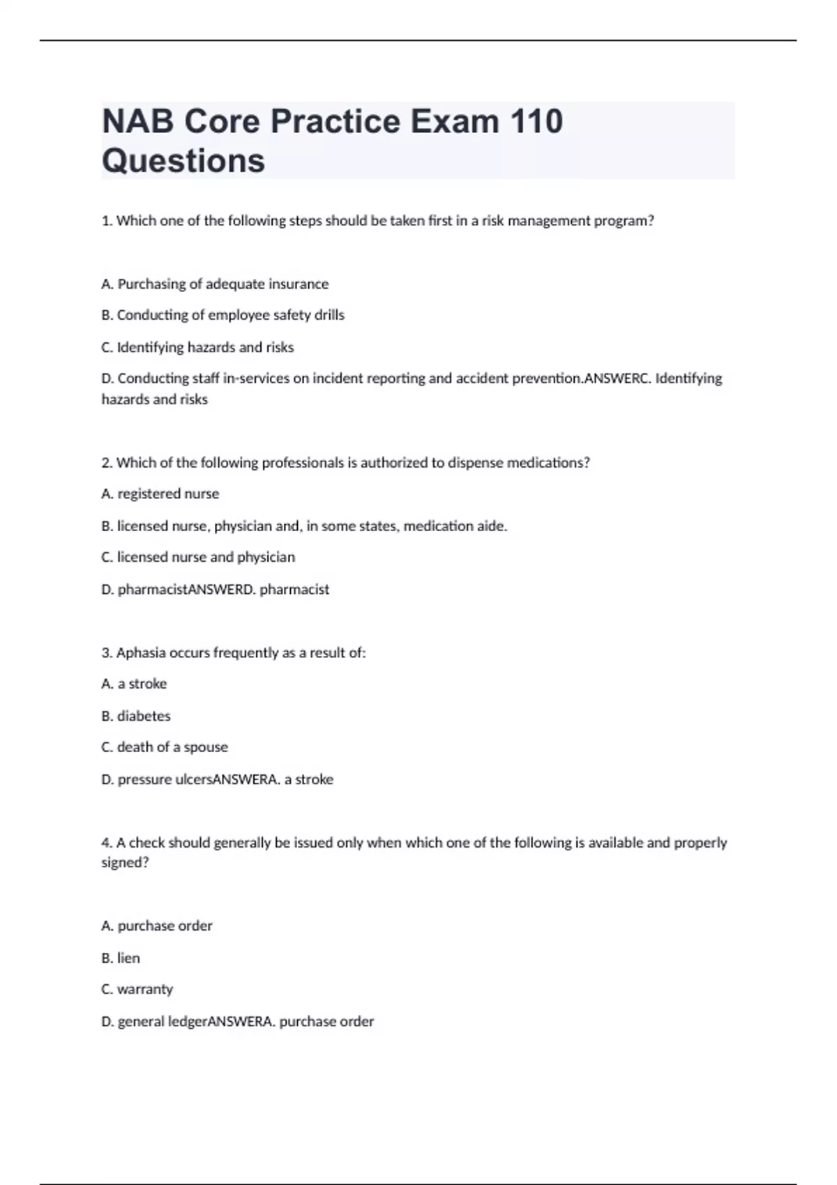 NAB Core Practice Exam 110 Questions And Answers (GRADED A+)