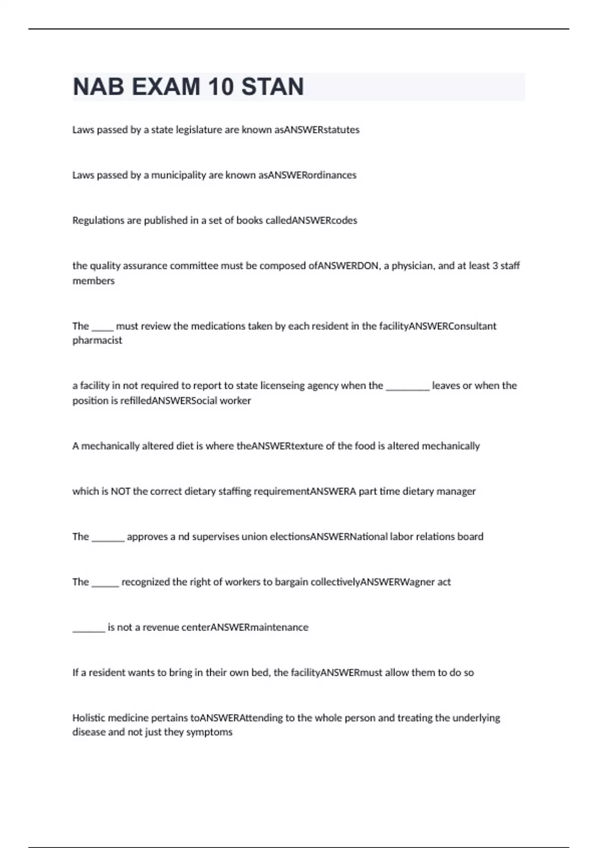 NAB EXAM 10 STAN Practice Question With Correct Answers (VERIFIERD ANSWERS )