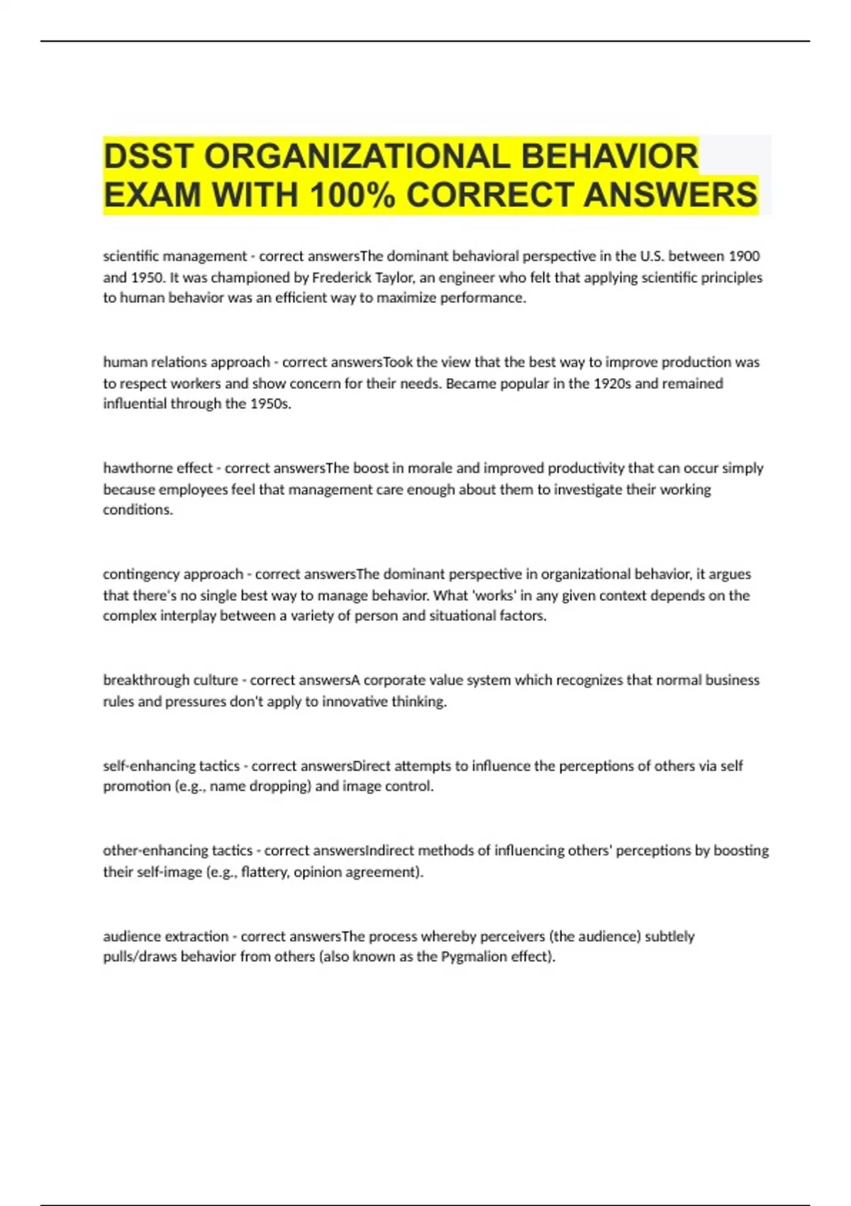 DSST ORGANIZATIONAL BEHAVIOR EXAM WITH 100% CORRECT ANSWERS
