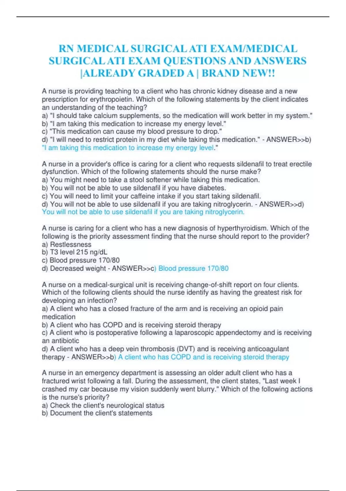 RN MEDICAL SURGICAL ATI EXAM/MEDICAL SURGICAL ATI EXAM QUESTIONS AND ANSWERS |ALREADY GRADED A | BRAND NEW!!