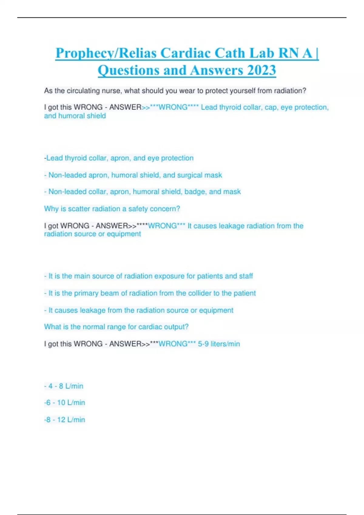 Prophecy/Relias Cardiac Cath Lab RN A | Questions and Answers 2023