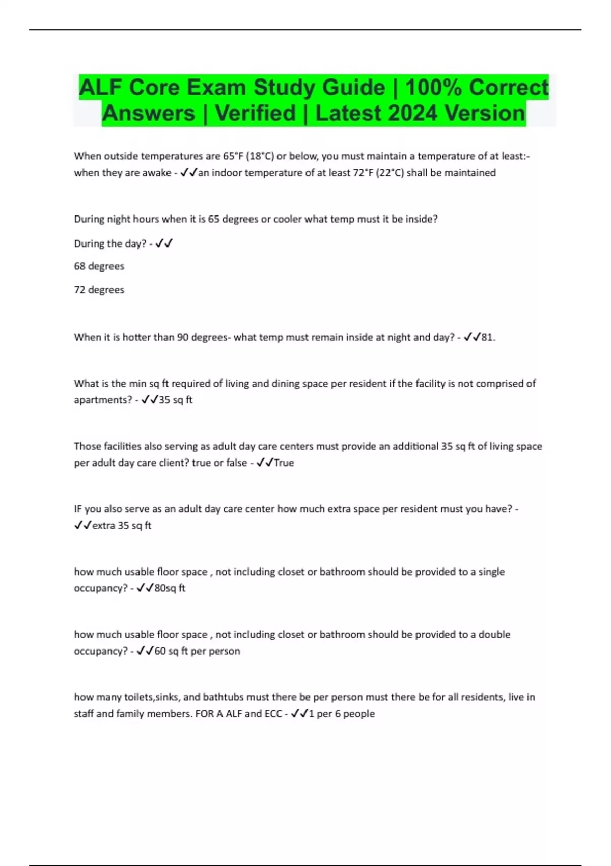 ALF Core Exam Study Guide | 100% Correct Answers | Verified | Latest 2024 Version