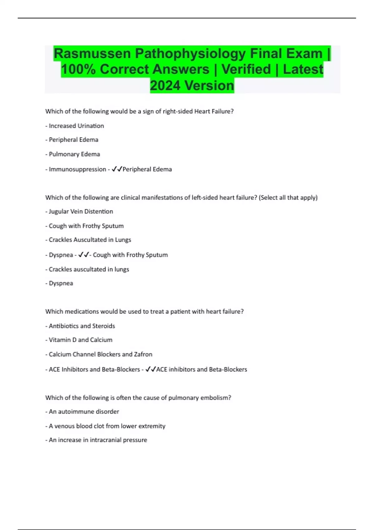 Rasmussen Pathophysiology Final Exam | 100% Correct Answers | Verified | Latest 2024 Version