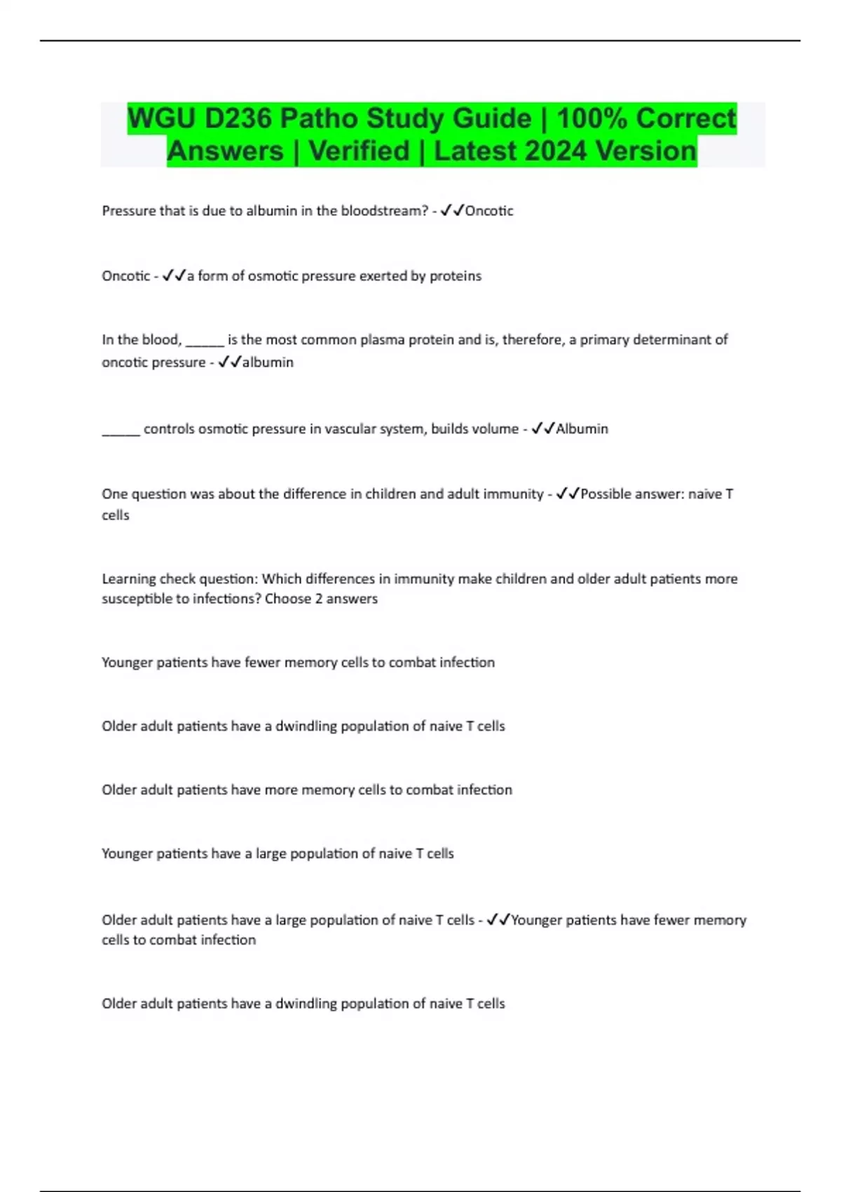 WGU D236 Patho Study Guide | 100% Correct Answers | Verified | Latest 2024 Version