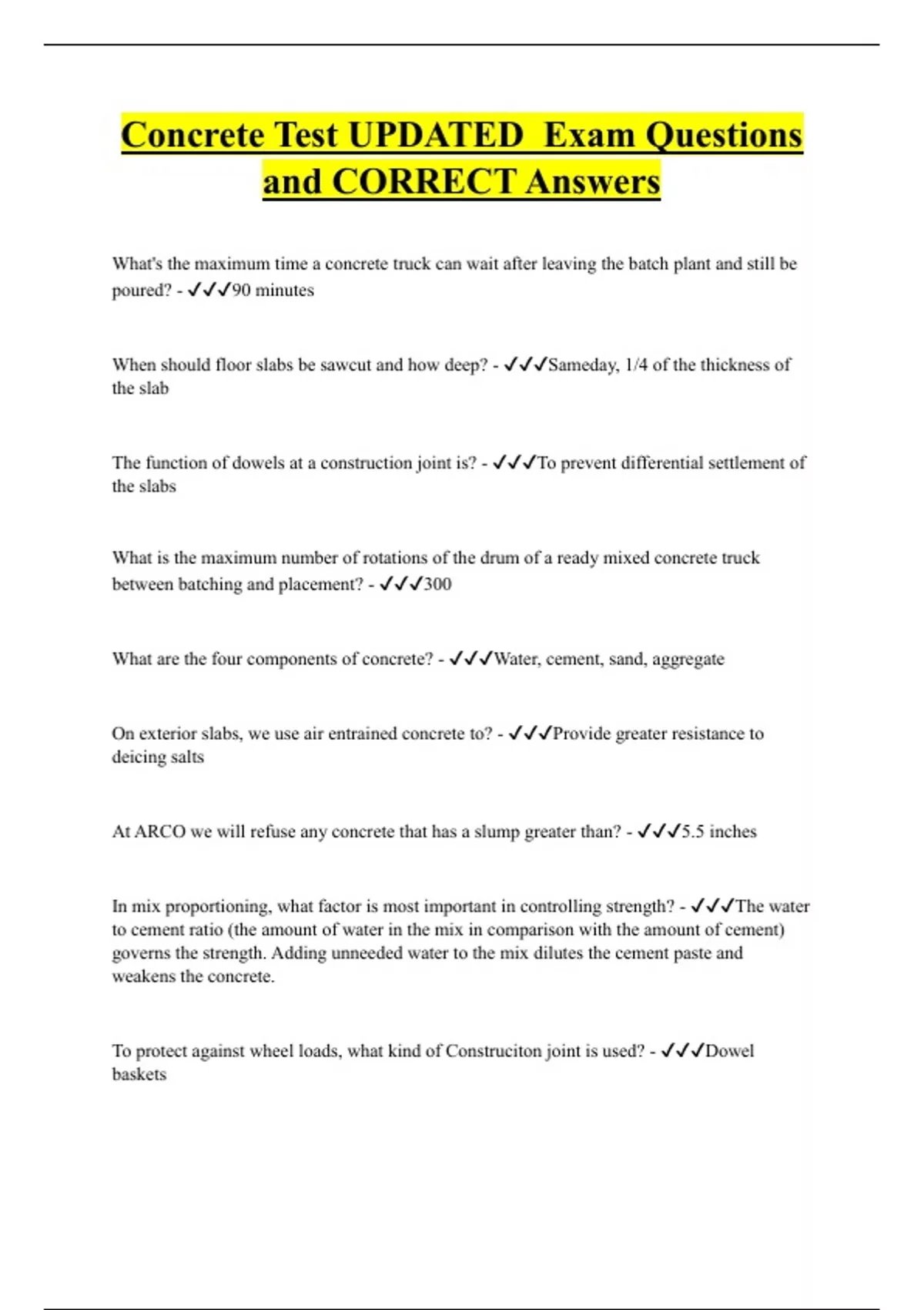 Concrete Test UPDATED Exam Questions and CORRECT Answers