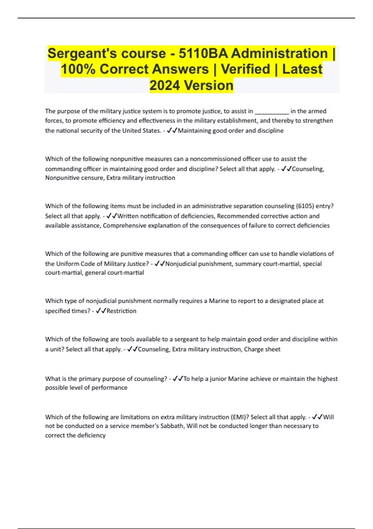 Sergeant's course - 5110BA Administration | 100% Correct Answers | Verified | Latest 2024 Version