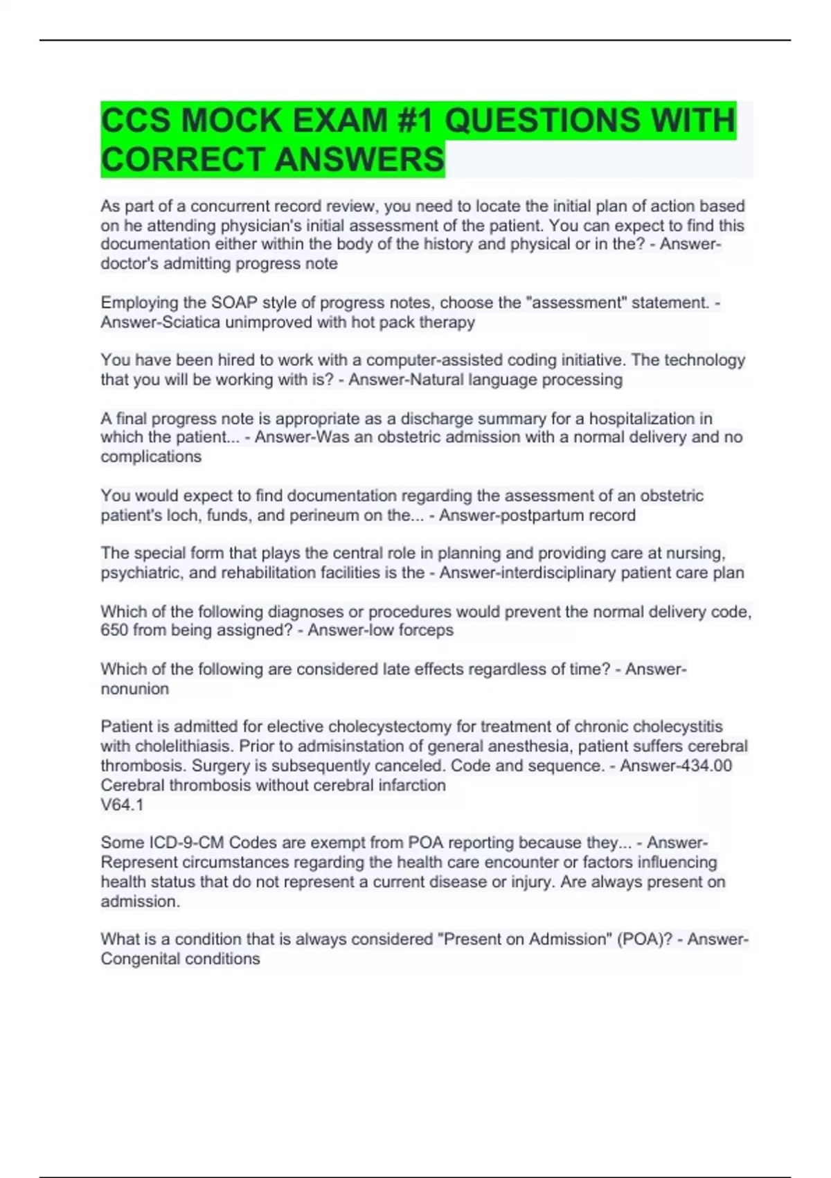 CCS MOCK EXAM QUESTIONS WITH CORRECT ANSWERS