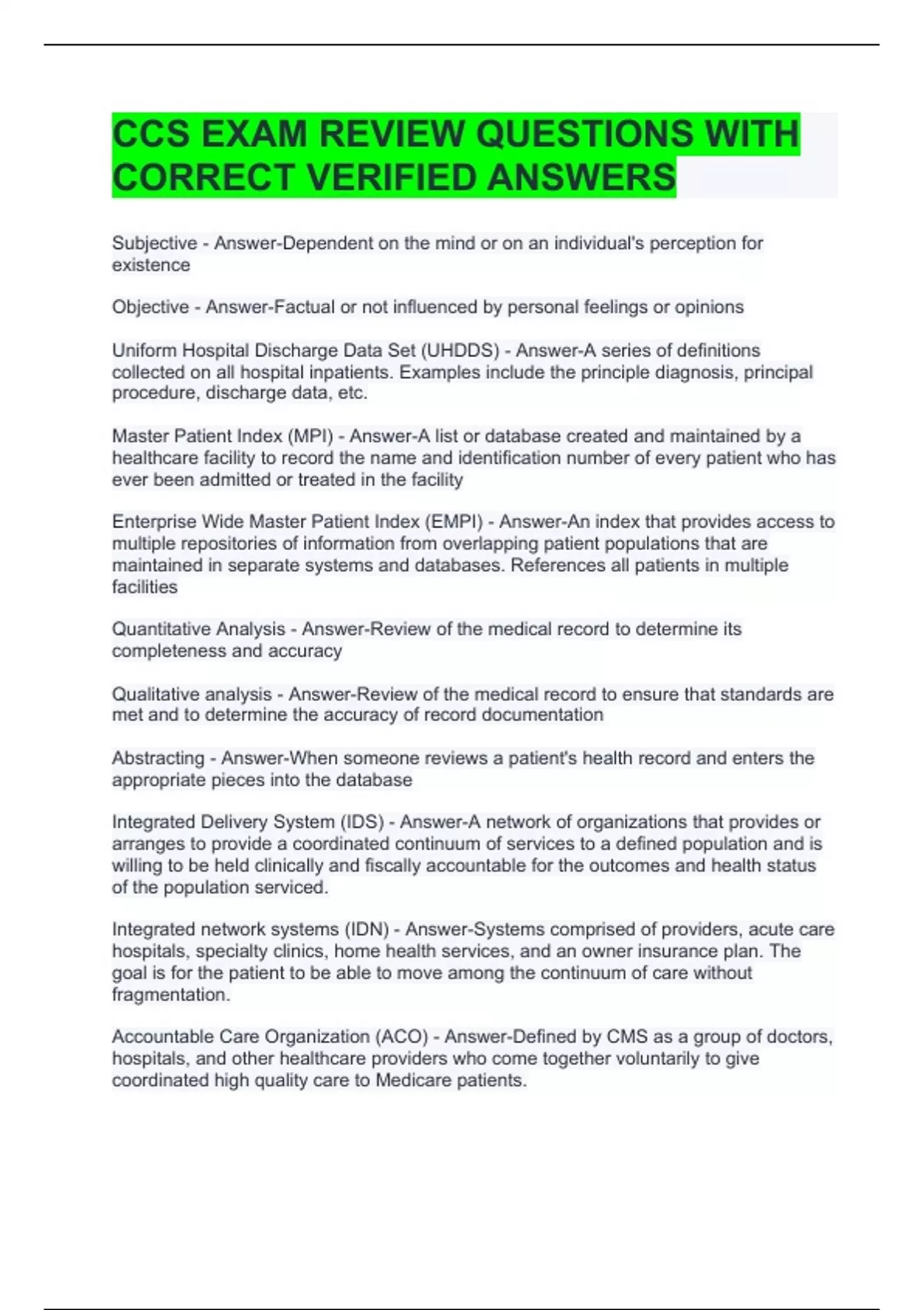 ccs exam review questions with correct answers