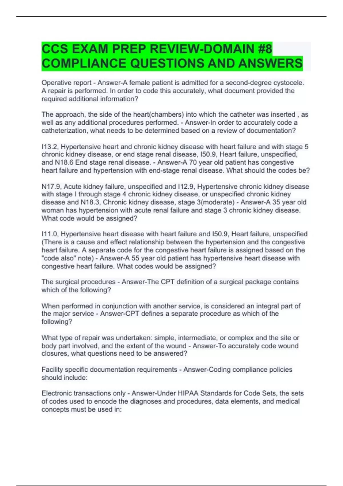 CCS EXAM REVIEW-DOMAIN #8 COMPLIANCE QUESTION AND ANSWERS