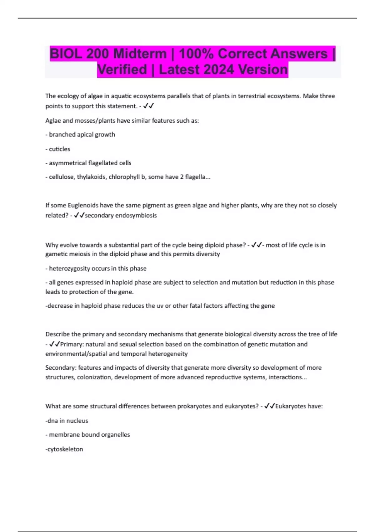 BIOL 200 Midterm | 100% Correct Answers | Verified | Latest 2024 Version