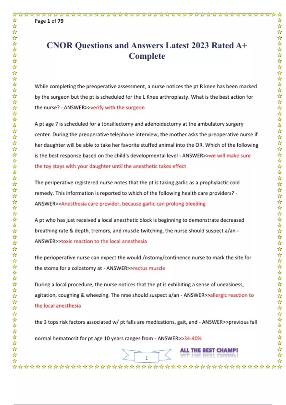 CNOR Questions and Answers Latest 2023 Rated A+ Complete