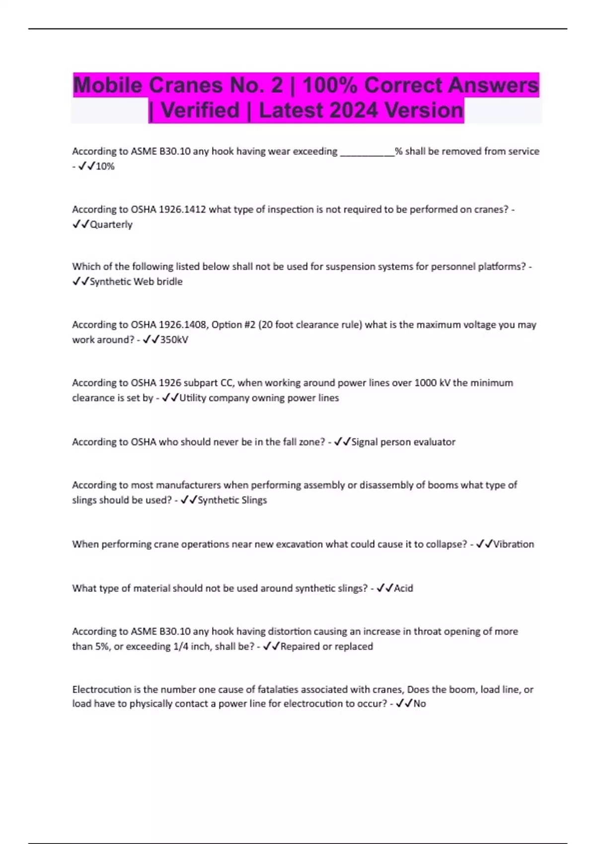 mobile cranes no 2 100 correct answers verif