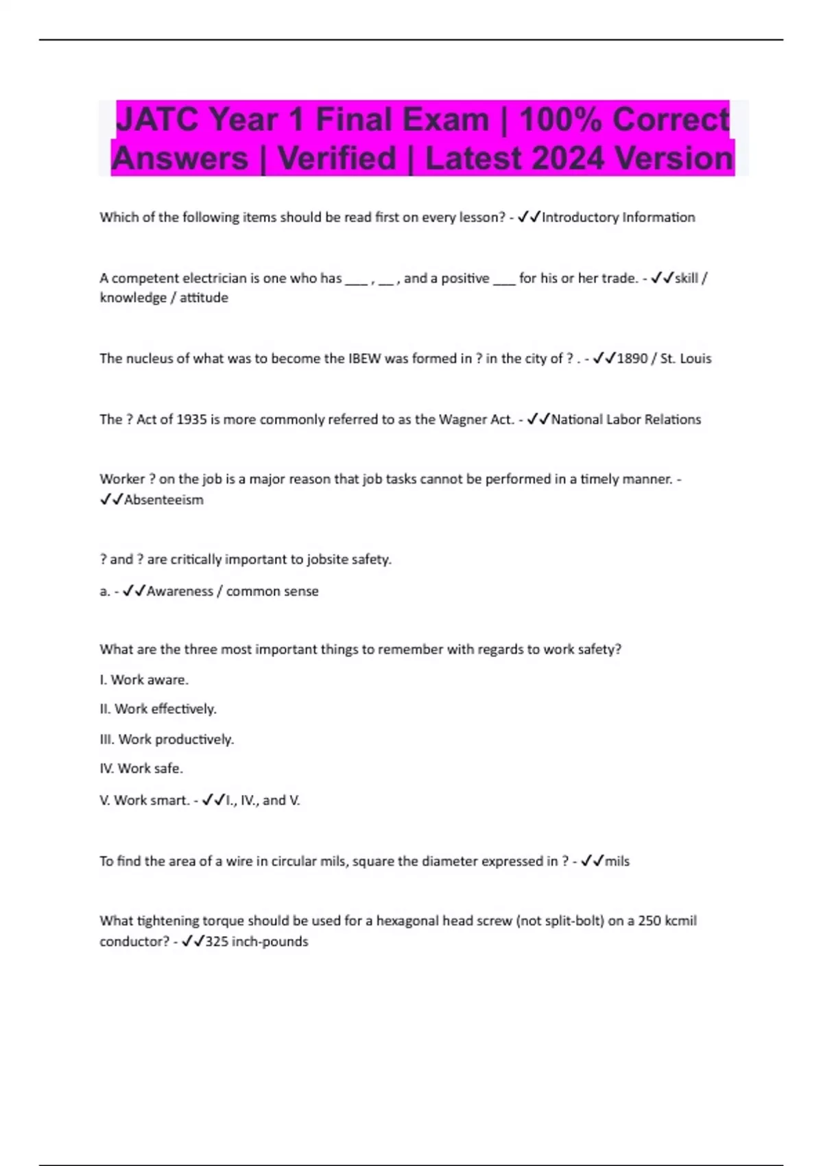 JATC Year 1 Final Exam | 100% Correct Answers | Verified | Latest 2024 Version