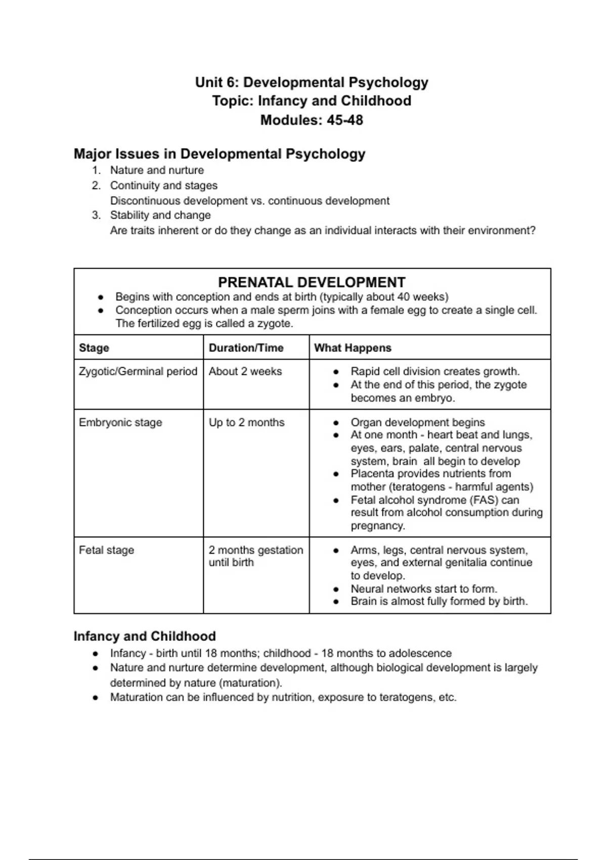 Summary INFANCY AND CHILDHOOD OUTLINE