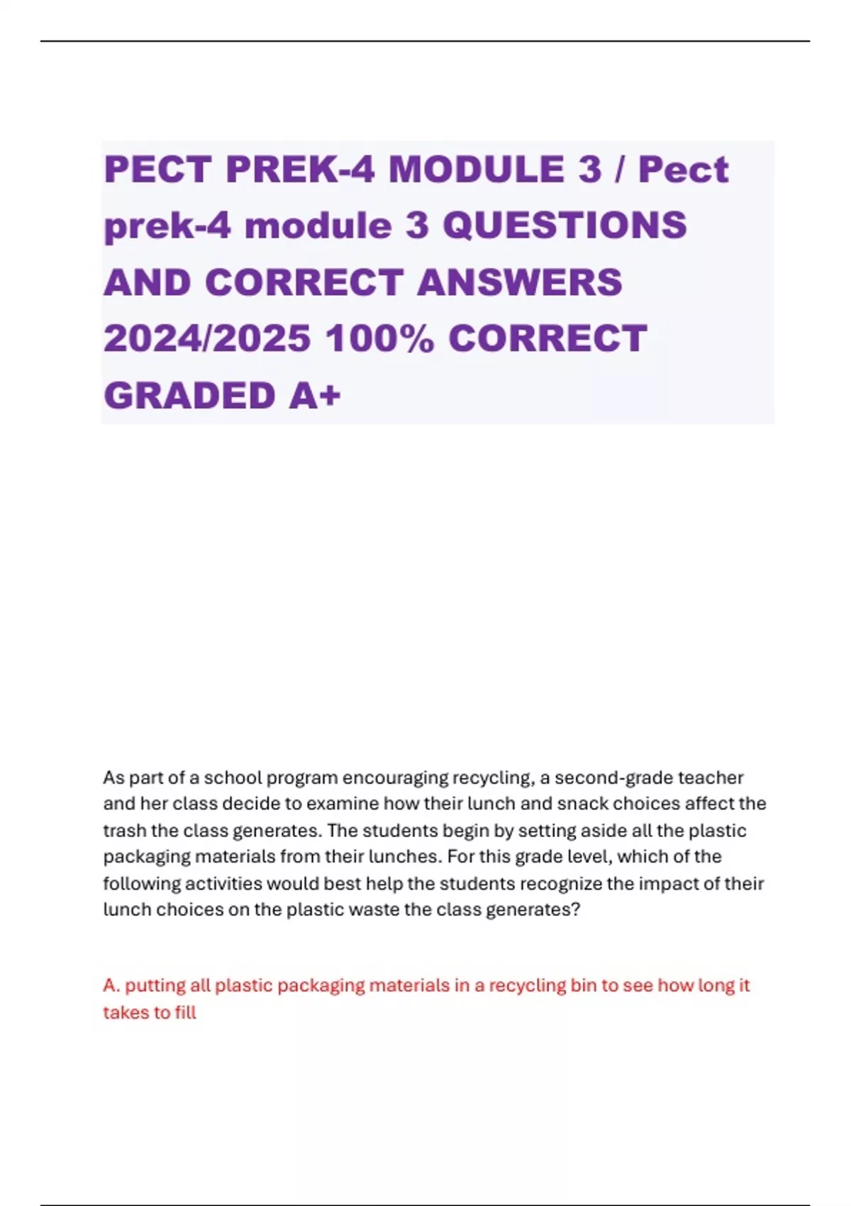 PECT PREK-4 MODULE 3 / Pect prek-4 module 3 QUESTIONS AND CORRECT ANSWERS 2024/2025 100% CORRECT GRADED A+