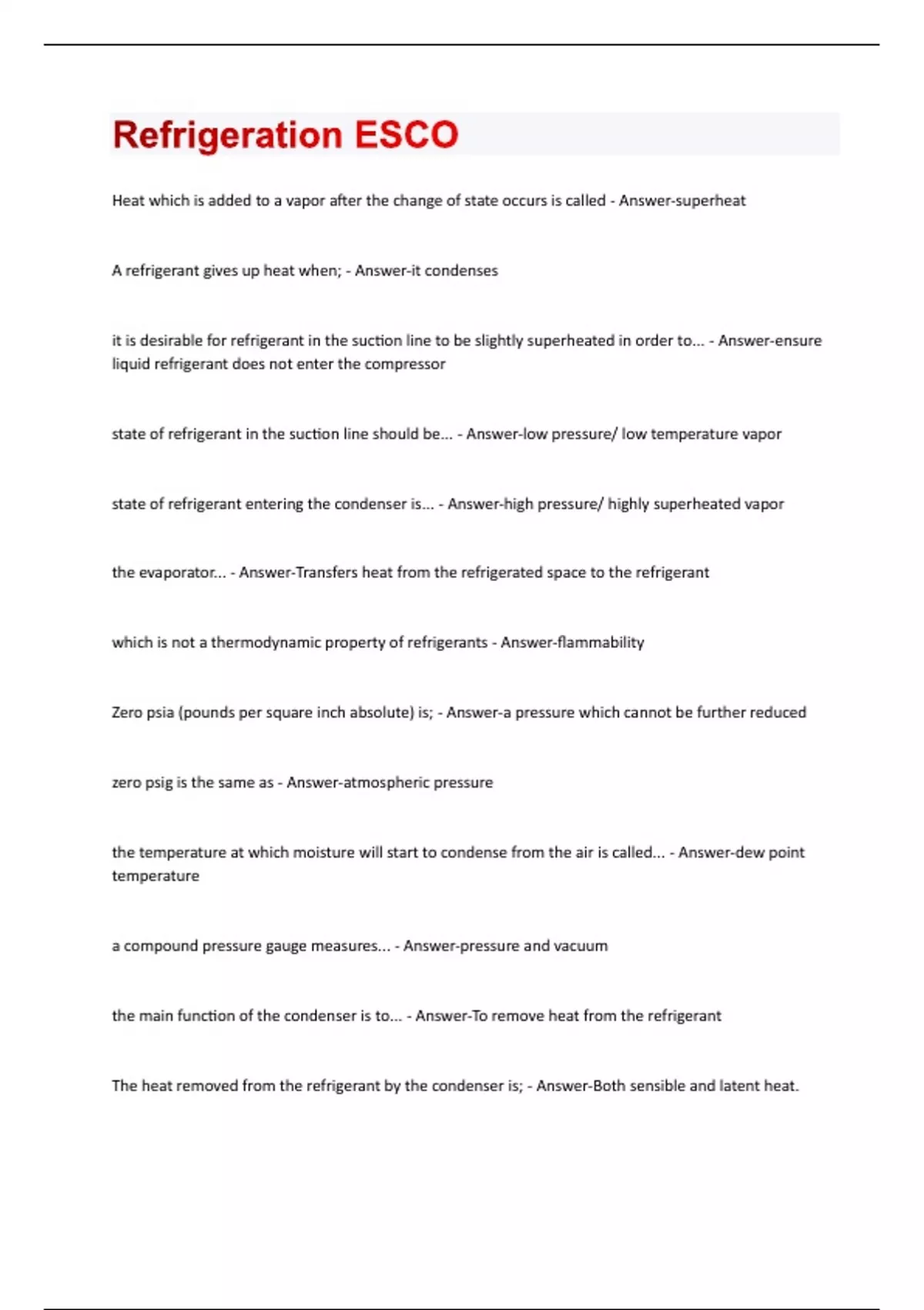 Refrigeration ESCO Questions And Answers With Verified Study Solutions