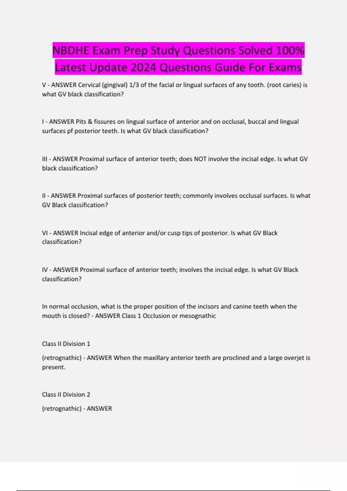 NBDHE Exam Prep Study Questions Solved 100% Latest Update 2024 Questions Guide For Exams
