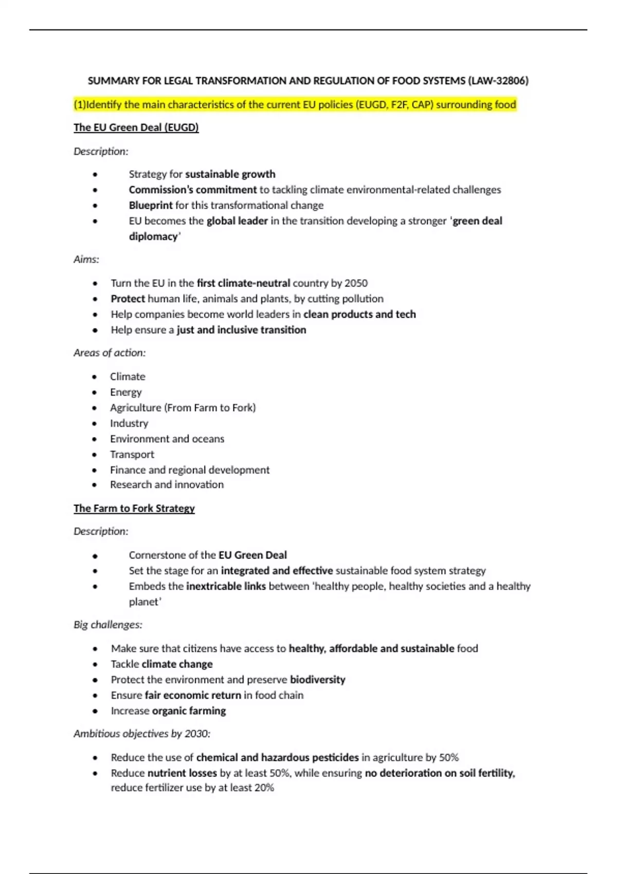 GRADE: 7.5. This document is a summary of the course Legal Transformation and Regulation of Food Systems (LAW-32806). Summary is made based upon the learning objectives of the course. Please note that this summary was written during the 2023/2024 academic year, and the content may have changed since then. Therefore, consider these documents as supplementary support for your exam preparation and not as your sole study guide.