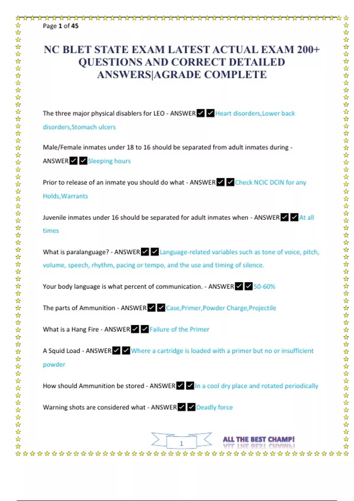 NC BLET STATE EXAM LATEST ACTUAL EXAMS