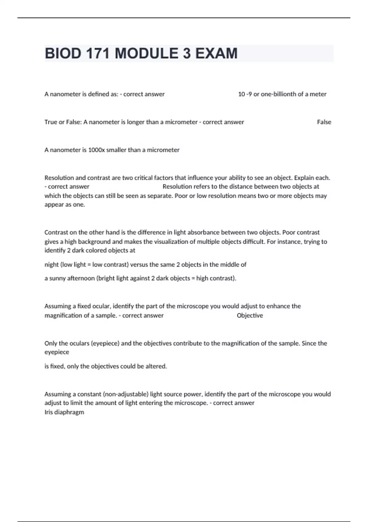 BIOD 171 MODULE 3 EXAM Questions With 100% Verified Answers Guaranteed Success.