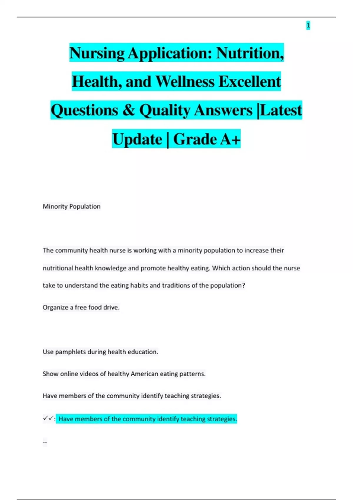 Nursing Application: Nutrition, Health, and Wellness Excellent Questions & Quality Answers |Latest Update | Grade A+