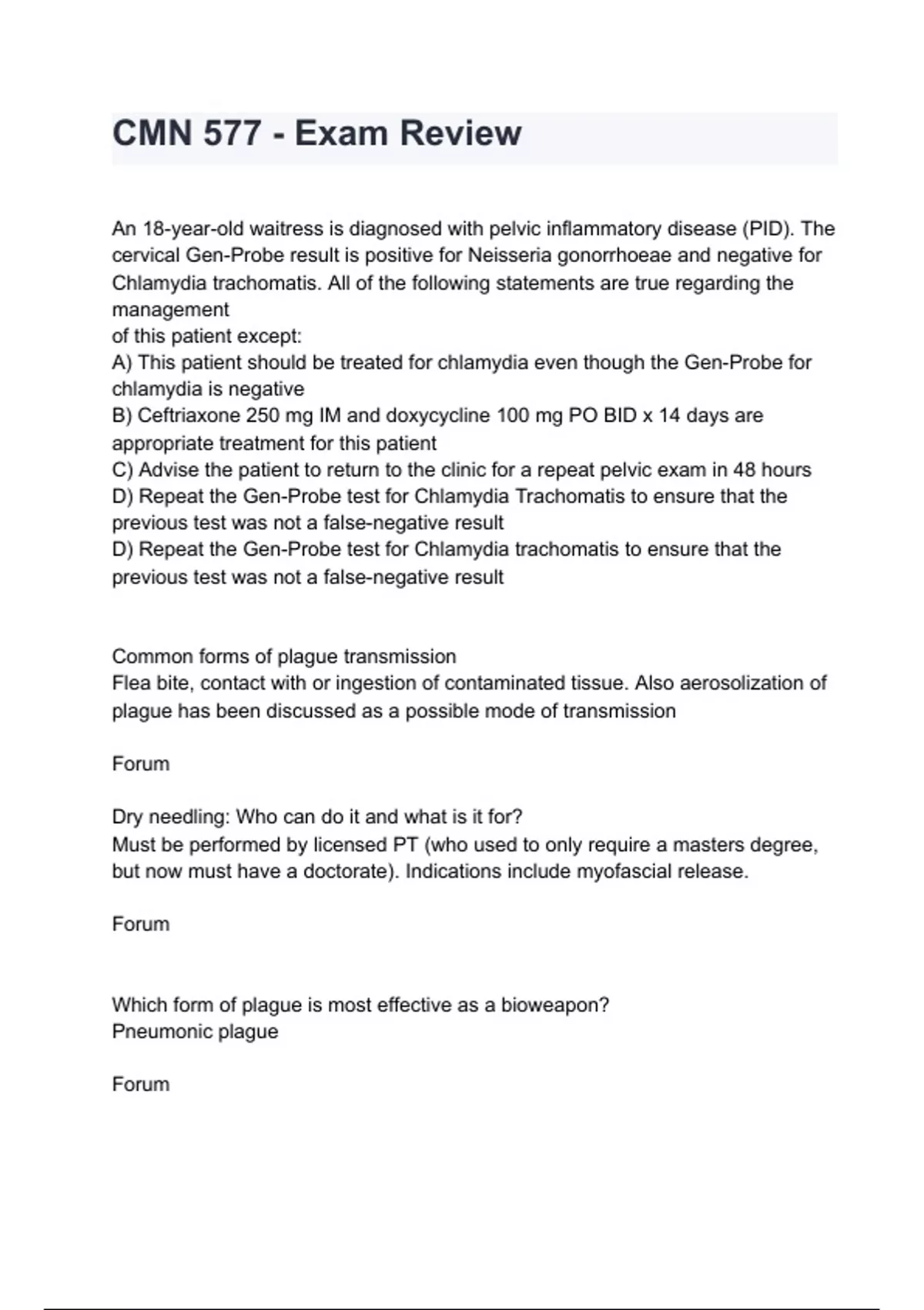 Chlamydia trachomatis. All of the following statements are true regarding the