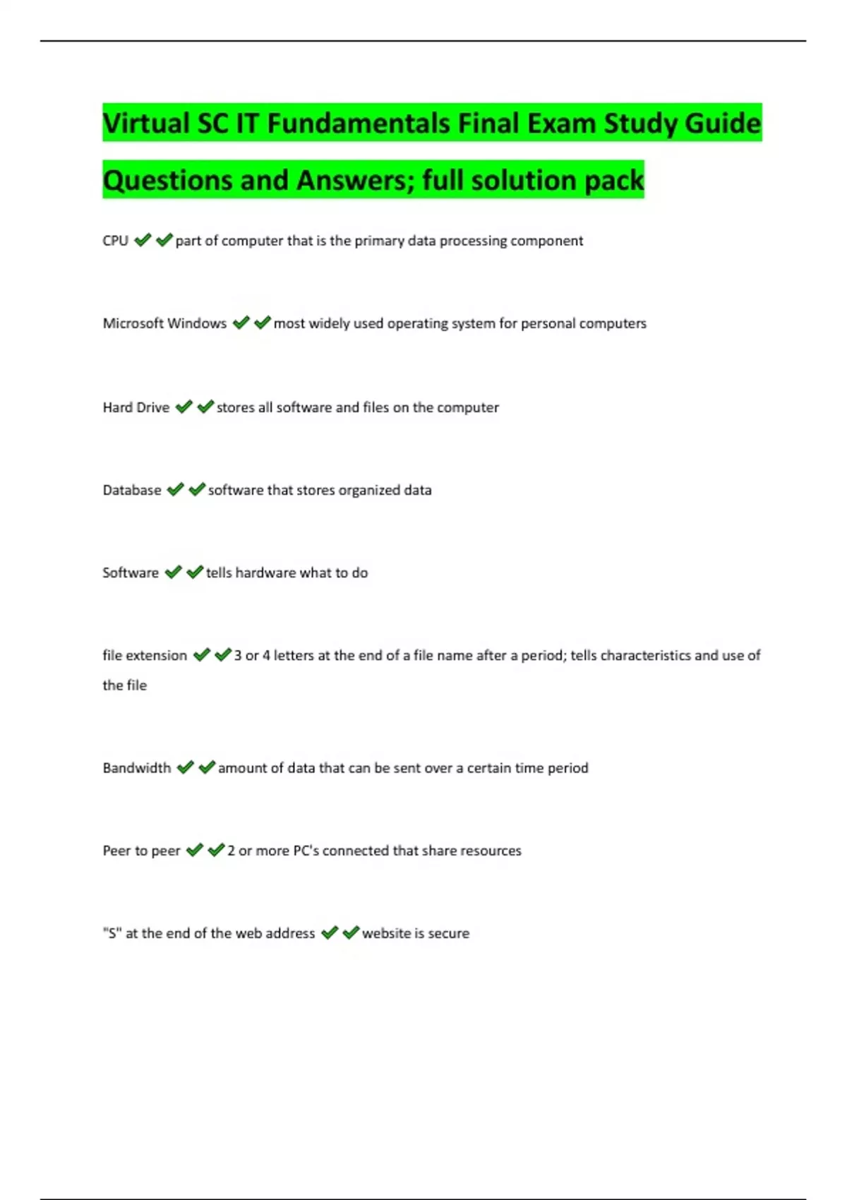Virtual SC IT Fundamentals Final Exam Study Guide Questions and Answers; full solution pack