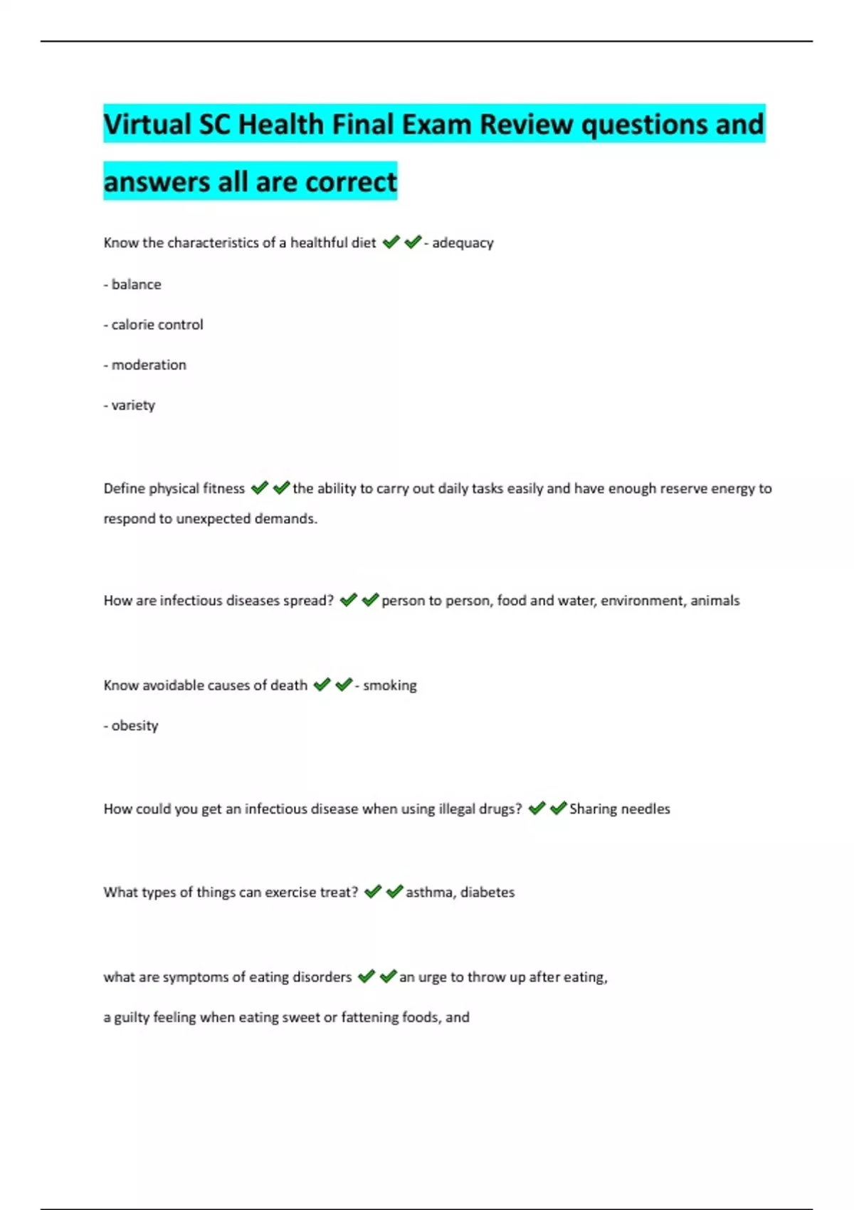 Virtual SC Health Final Exam Review questions and answers all are correct