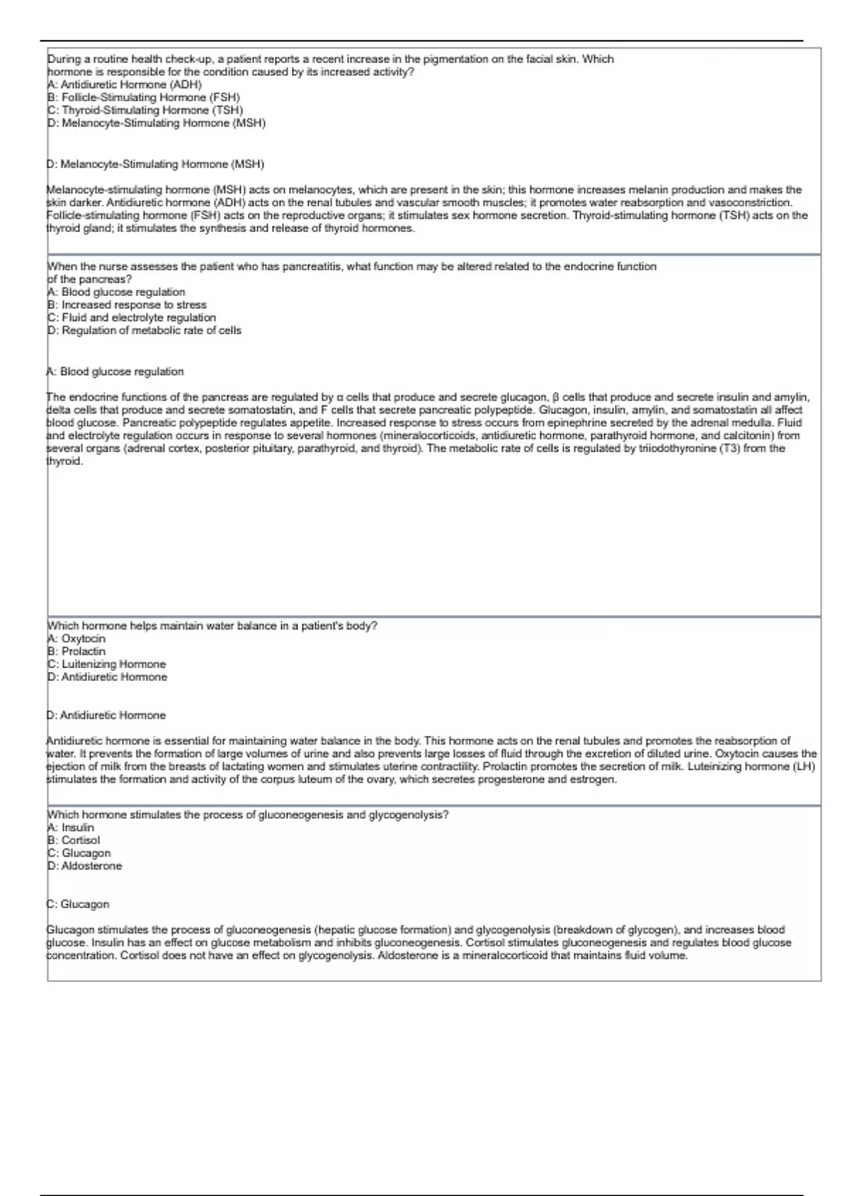 CHAPTER 1 NURSING ENDOCRINE QUESTIONS AND CORRECT ANSWERS