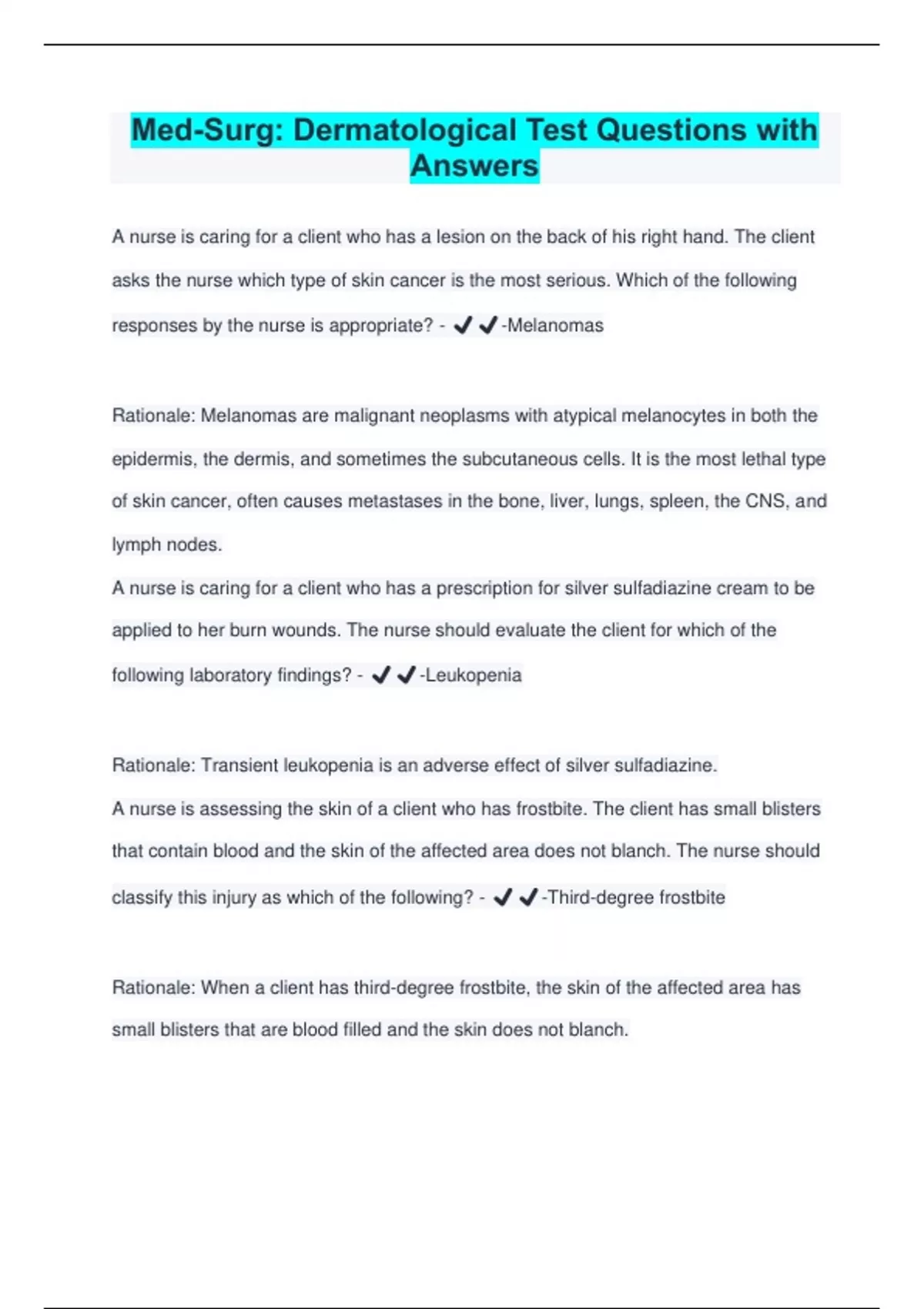 responses by the nurse is appropriate? - ✔️✔️-Melanomas