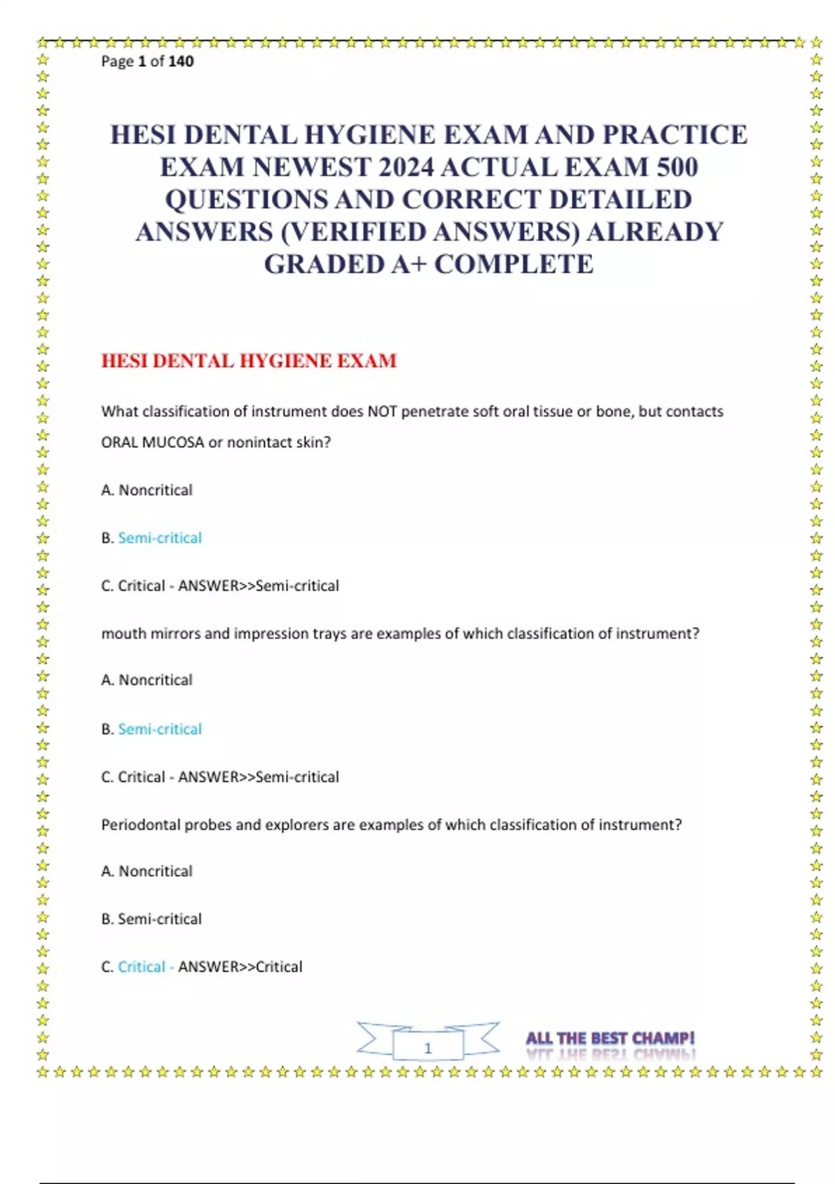 HESI DENTAL HYGIENE EXAM AND PRACTICE EXAM NEWEST 2024 ACTUAL EXAM 500 QUESTIONS AND CORRECT DETAILED ANSWERS (VERIFIED ANSWERS) ALREADY GRADED A+ COMPLETE