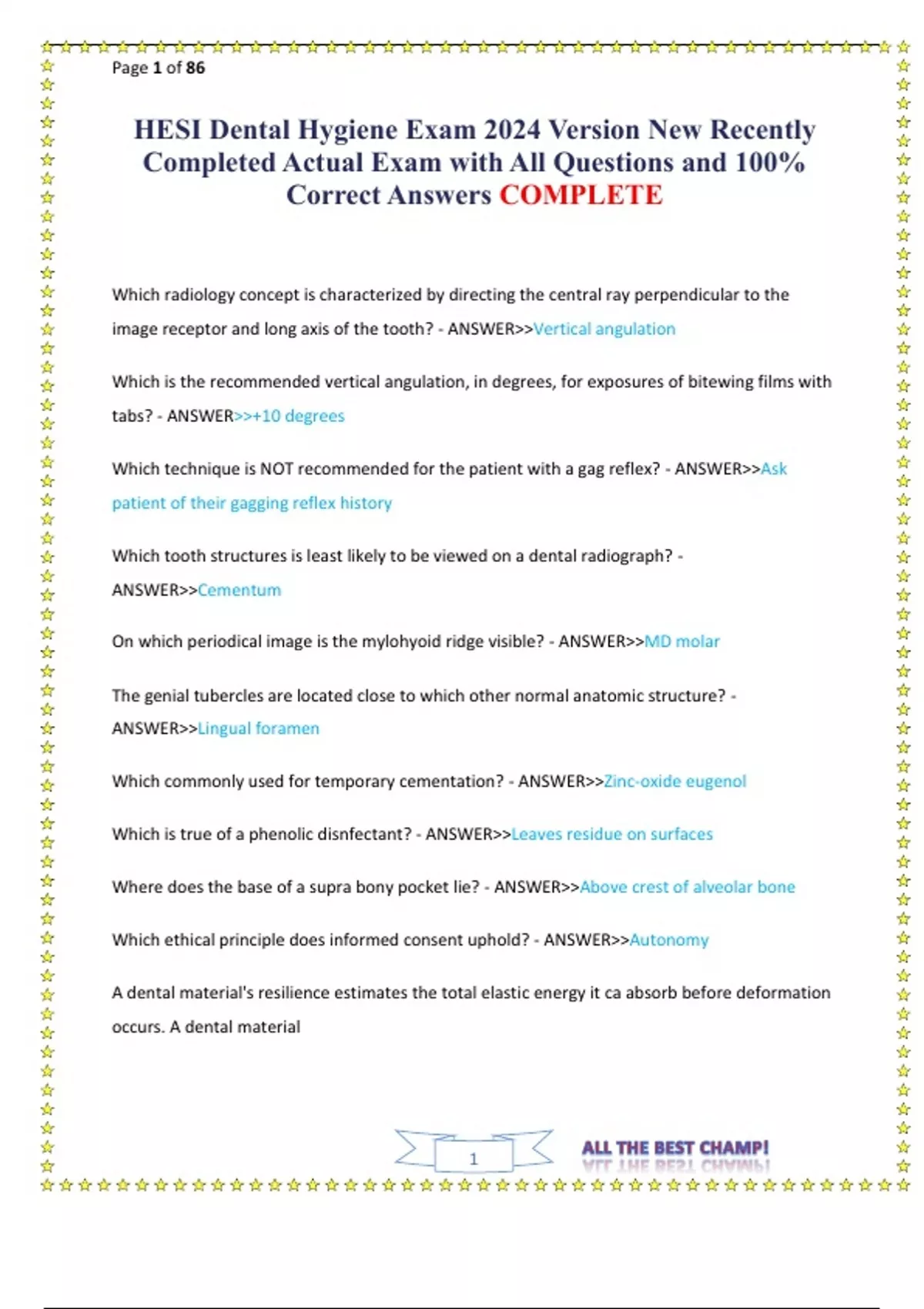 HESI Dental Hygiene Exam 2024 Version New Recently Completed Actual Exam with All Questions and 100%- Correct Answers COMPLETE