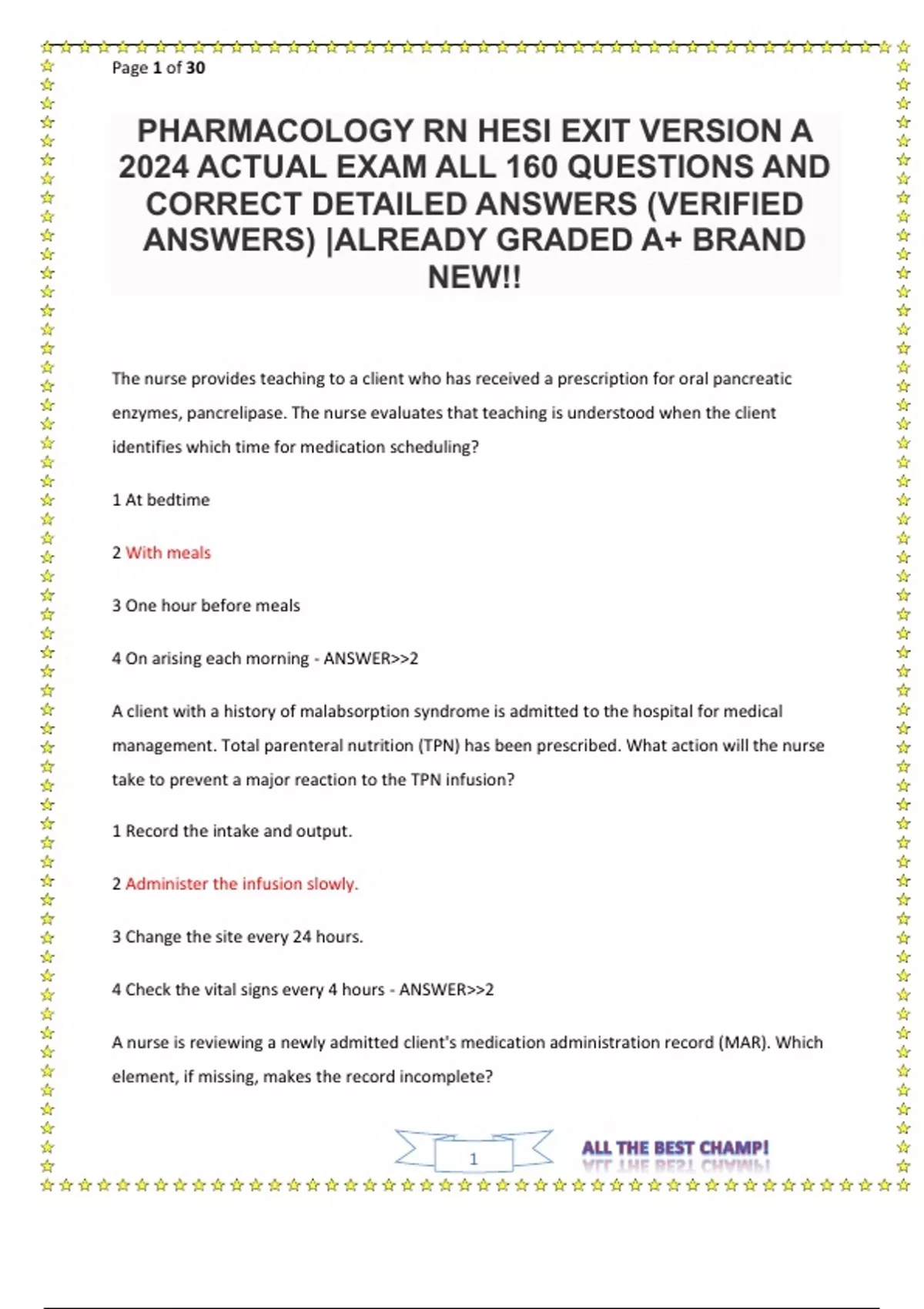 PHARMACOLOGY RN HESI EXIT VERSION A 2024 ACTUAL EXAM ALL 160 QUESTIONS AND CORRECT DETAILED ANSWERS (VERIFIED ANSWERS) ALREADY GRADED A+ BRAND NEW!!