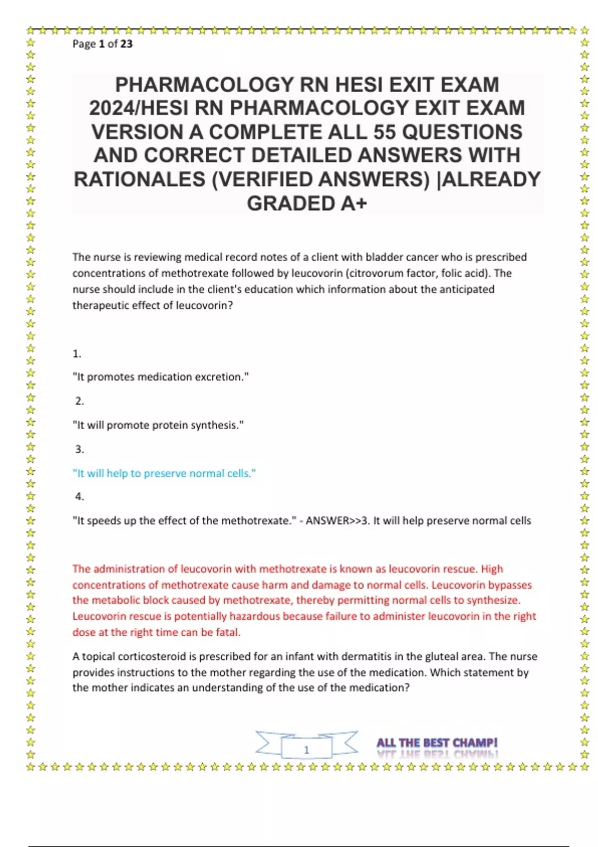 PHARMACOLOGY RN HESI EXIT EXAM 2024-HESI RN PHARMACOLOGY EXIT EXAM VERSION A COMPLETE ALL 55 QUESTIONS AND CORRECT DETAILED ANSWERS WITH RATIONALES (VERIFIED ANSWERS) ALREADY GRADED A+.
