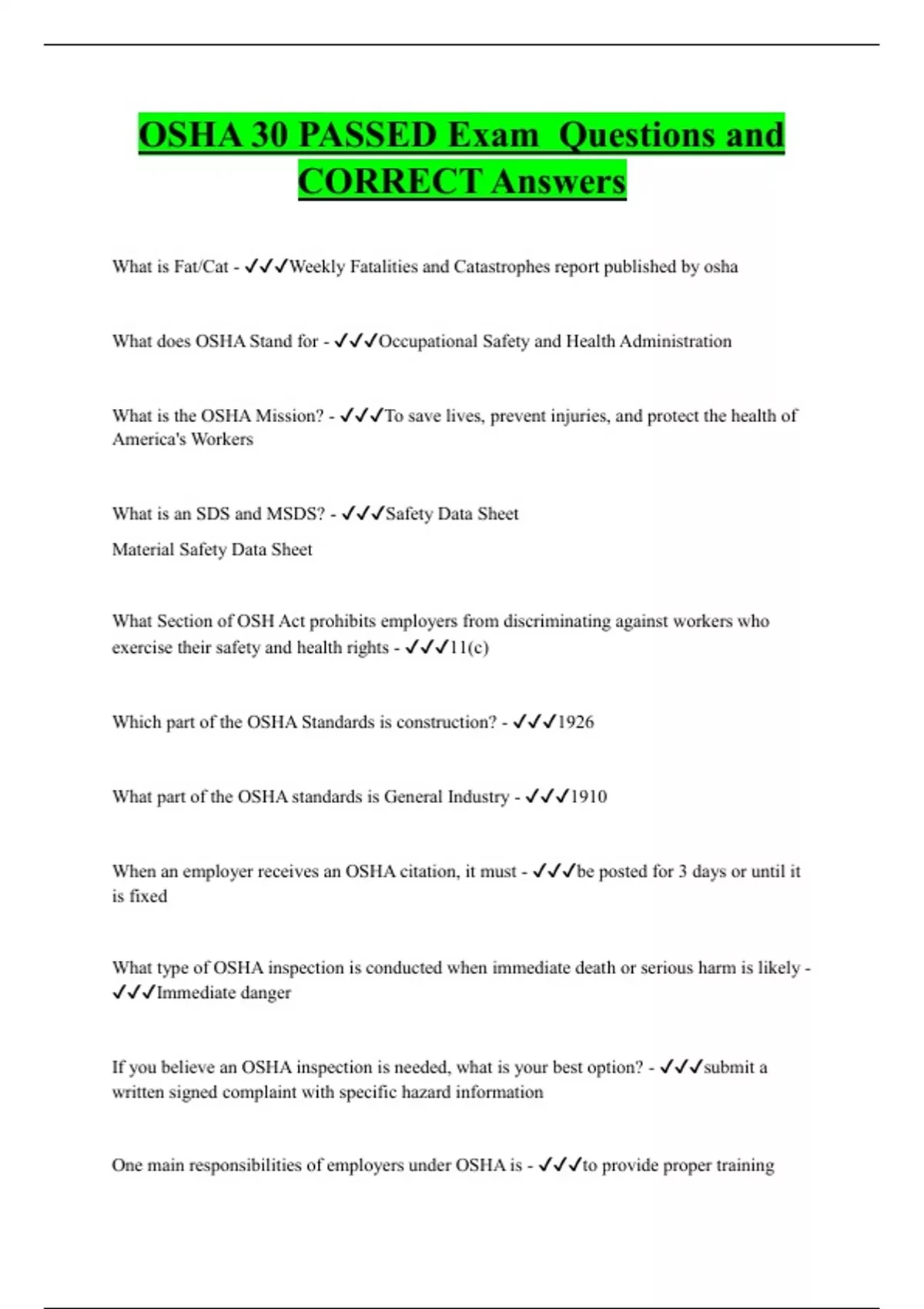 OSHA 30 PASSED Exam Questions and CORRECT Answers
