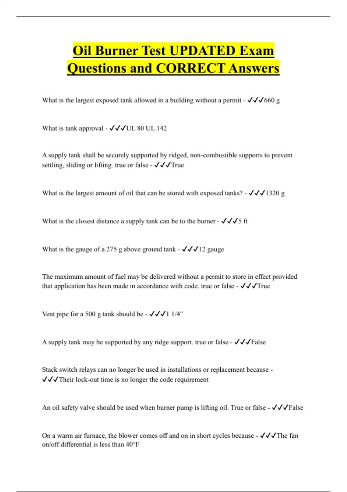 Oil Burner Test UPDATED Exam Questions and CORRECT Answers