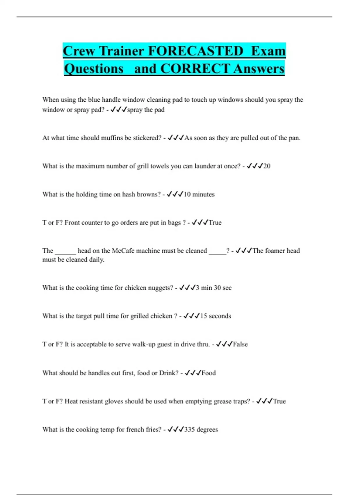 Crew Trainer FORECASTED Exam Questions and CORRECT Answers