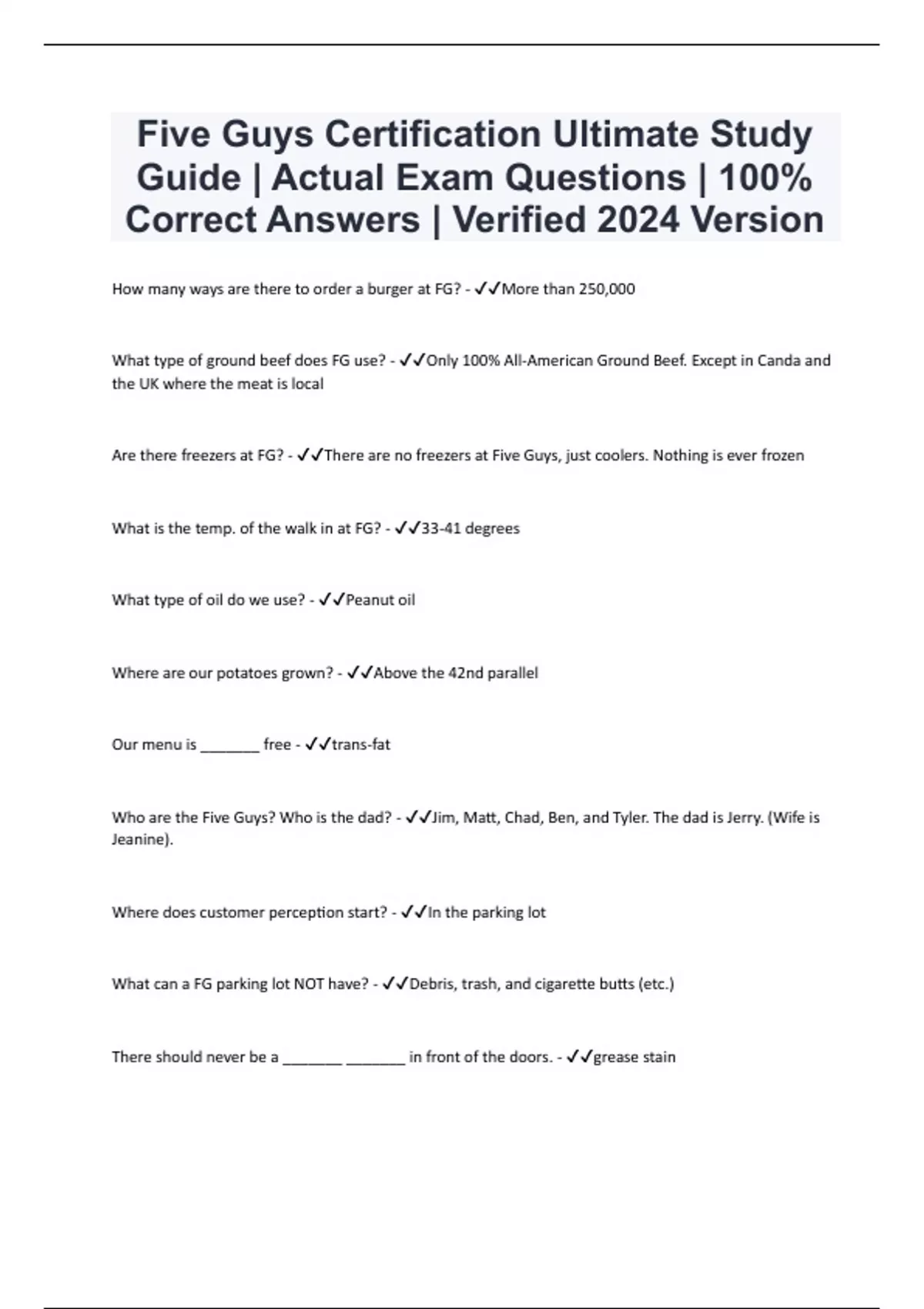 Five Guys Certification Bundled Resources with Complete Solution | Expert Verified 2024/2025 | Guaranteed Success