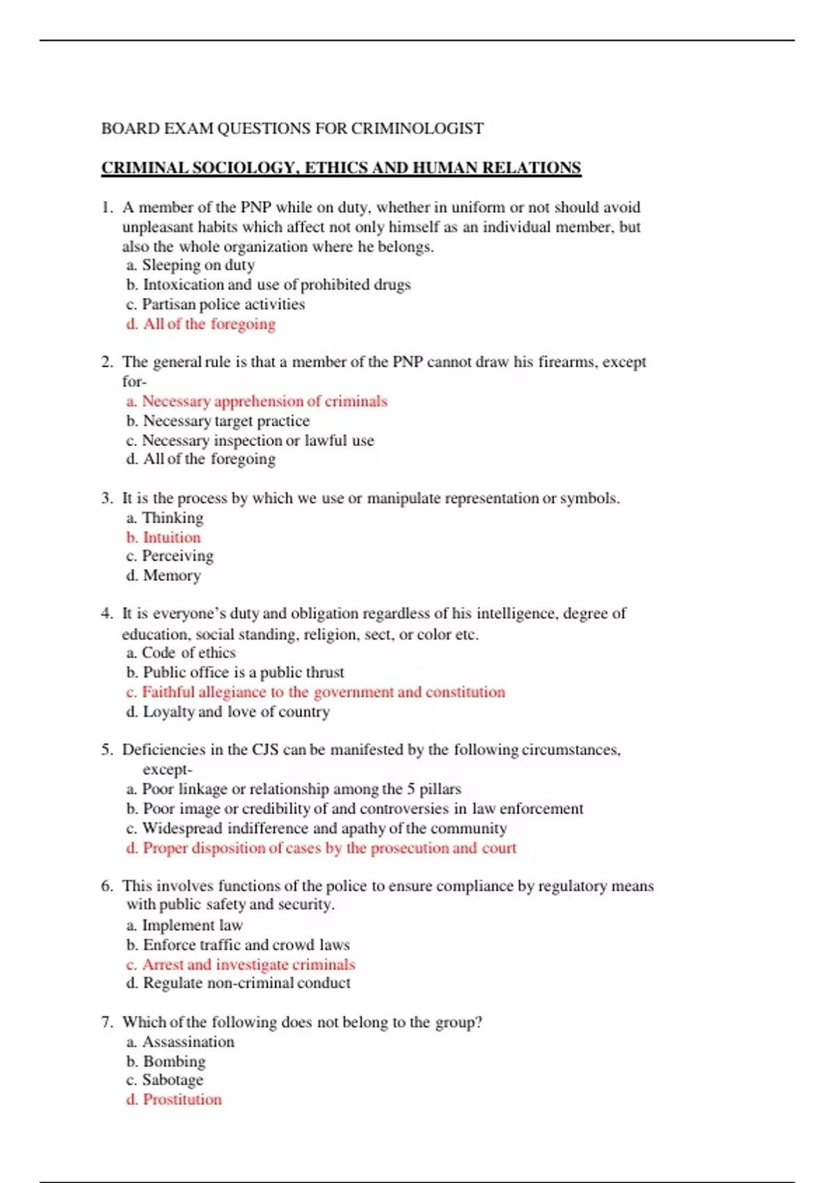 1. A member of the PNP while on duty, whether in uniform or not should avoid unpleasant habits which affect not only himself as an individual member, but also the whole organization where he belongs. a. Sleeping on duty b. Intoxication and use of prohibited drugs c. Partisan police activities d. All of the foregoing
