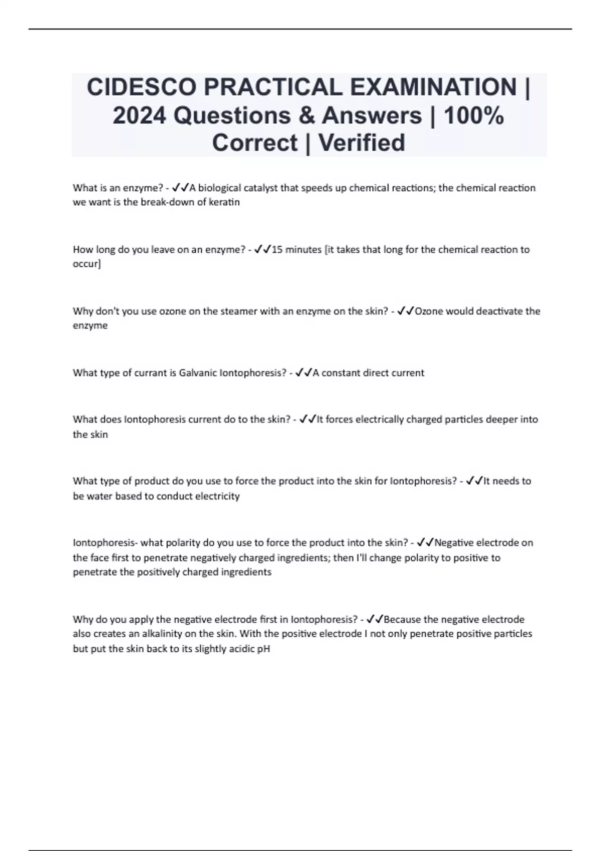 CIDESCO PRACTICAL EXAMINATION | 2024 Questions & Answers | 100% Correct | Verified