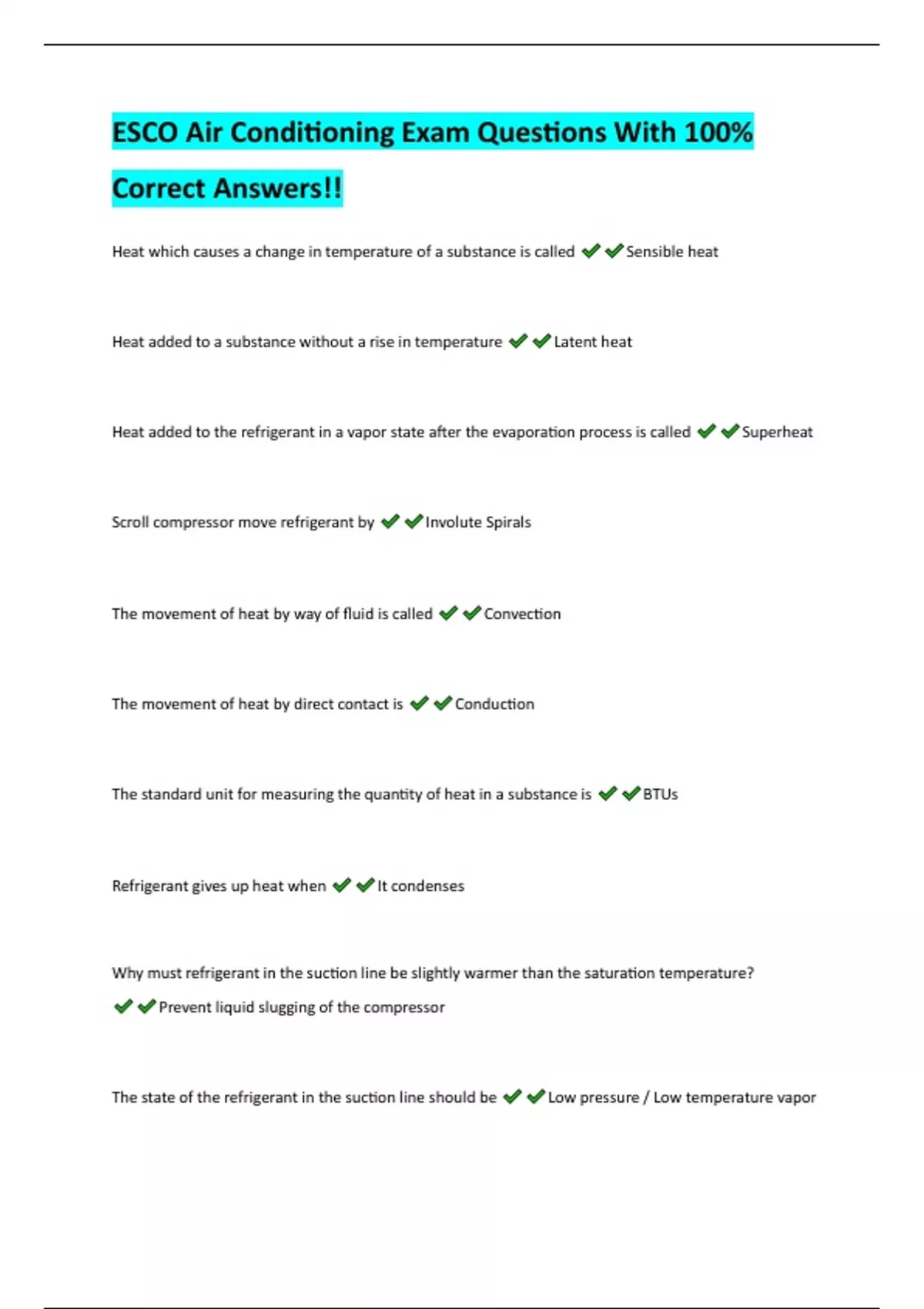 esco air conditioning exam questions with 100