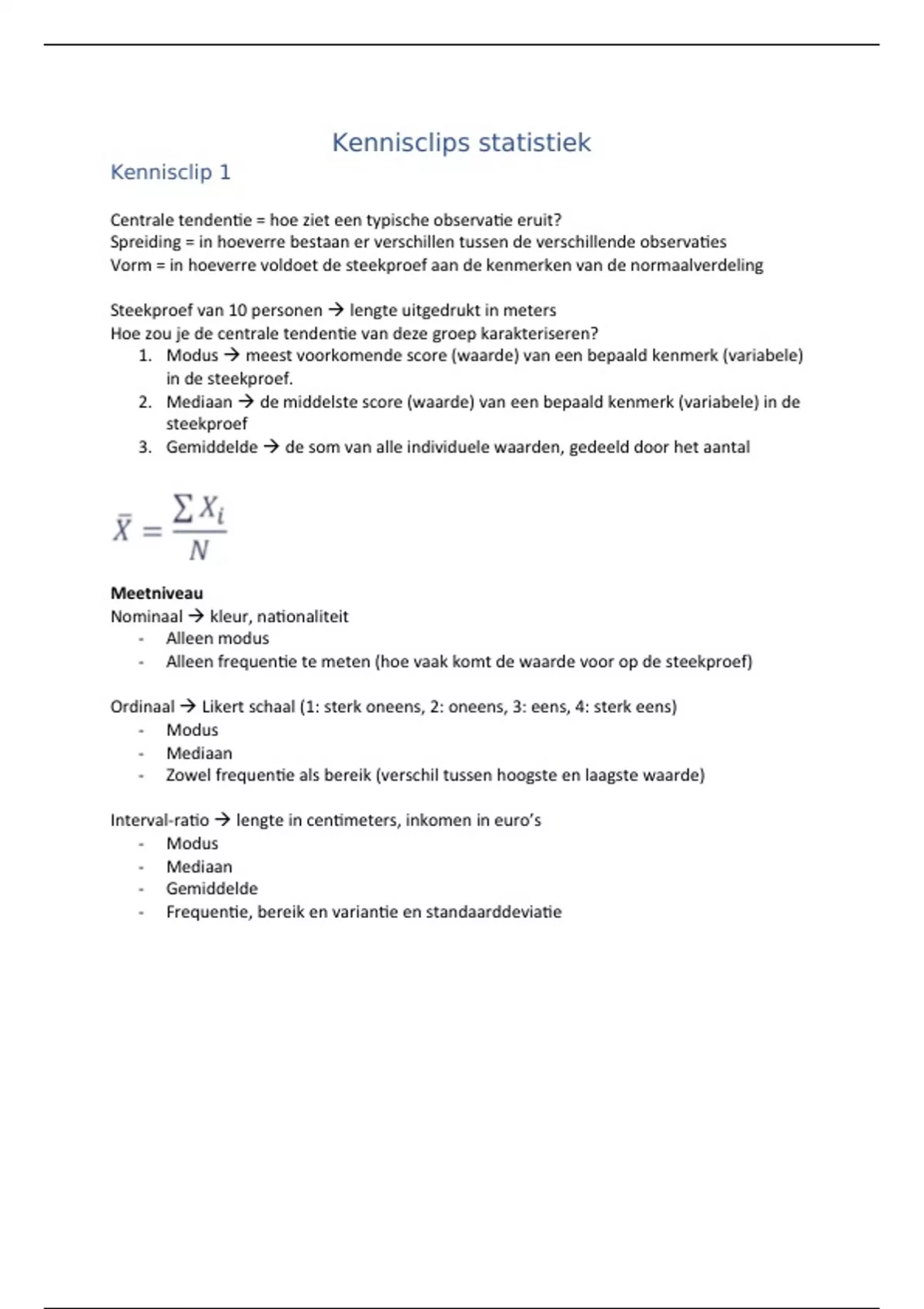 Centrale tendentie = hoe ziet een typische observatie eruit?