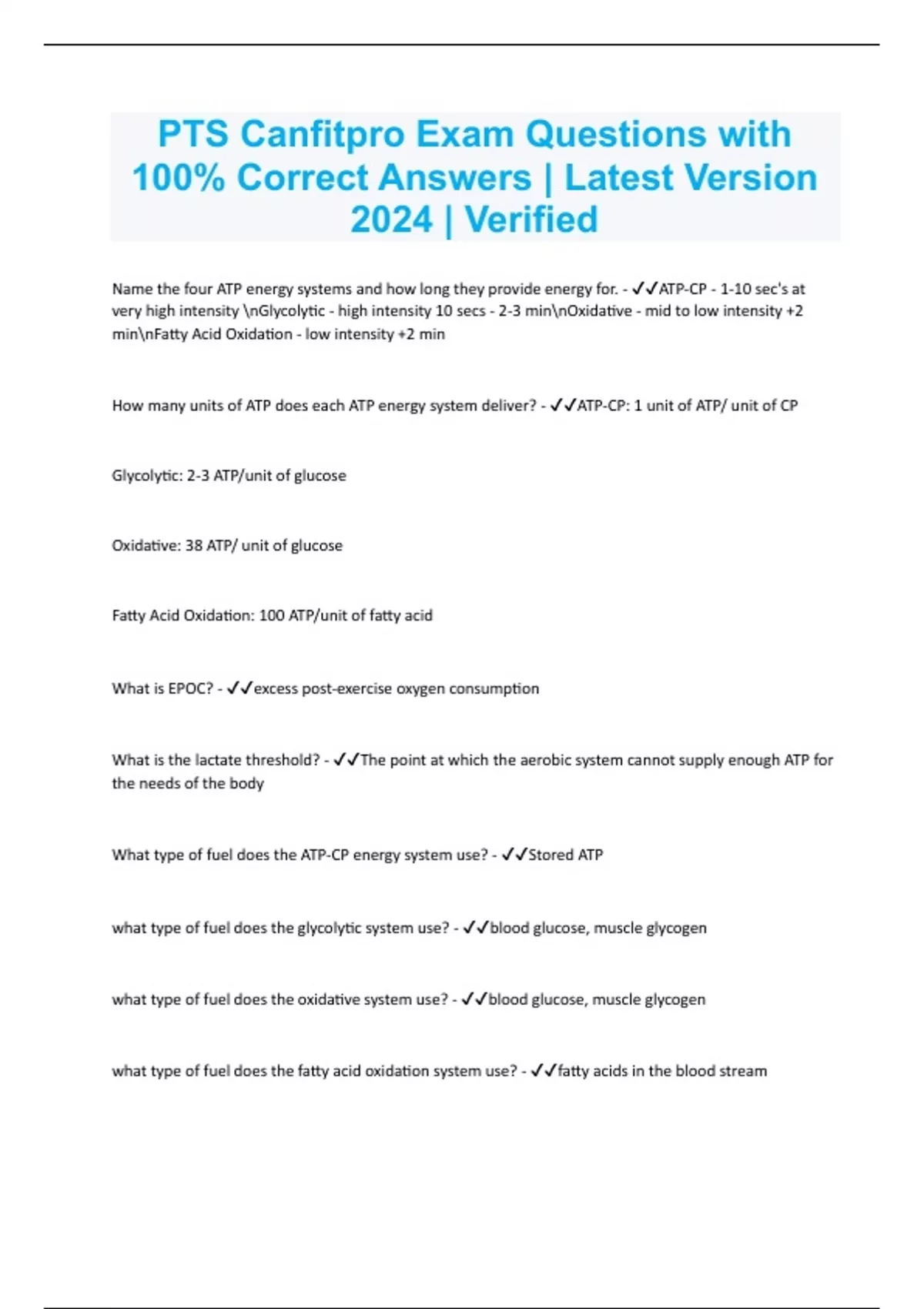 PTS Canfitpro Exam Questions with 100% Correct Answers | Latest Version 2024 | Verified