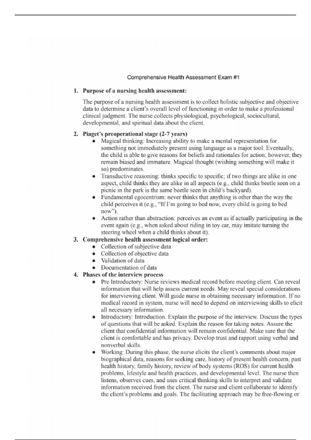 Health Assessment- Nursing Accelerated Program Exam 1 Study Quide