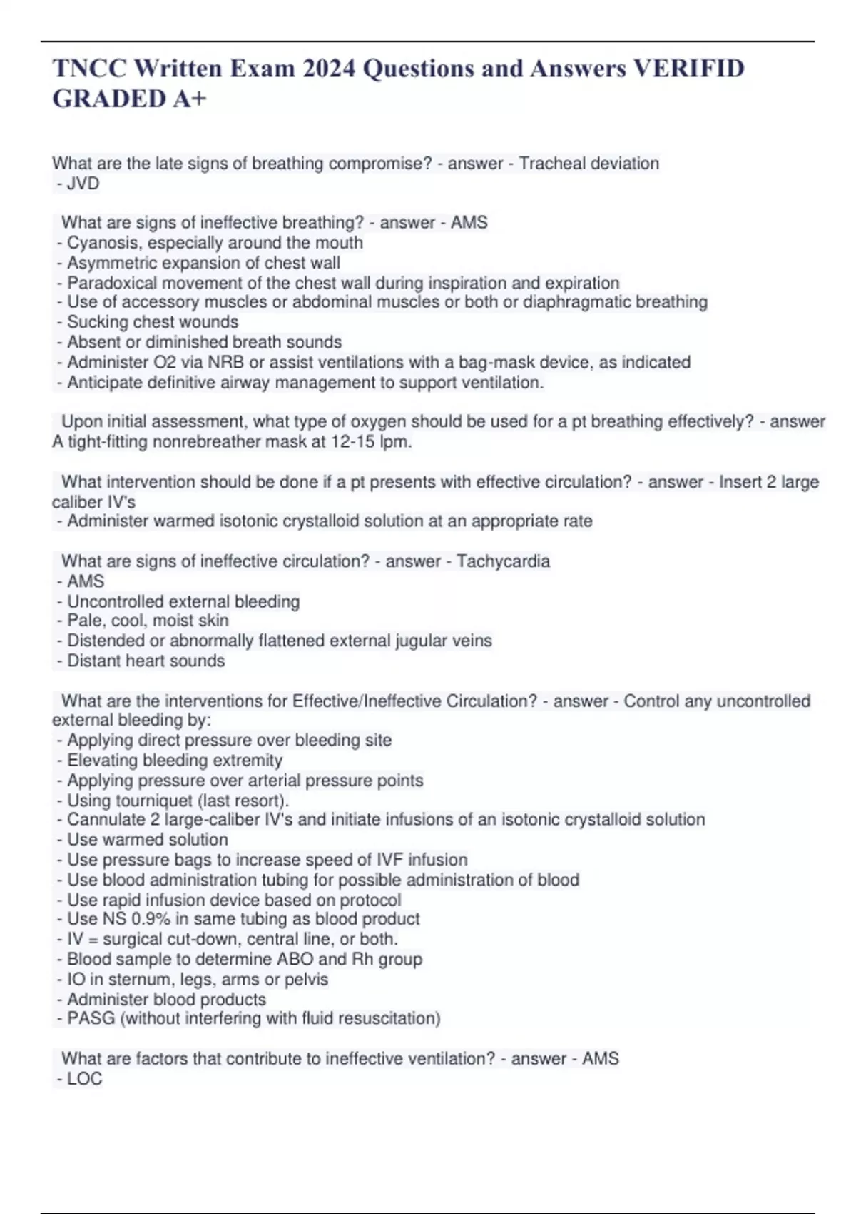 TNCC Written Exam 2024 Questions and AnswersGRADED A+