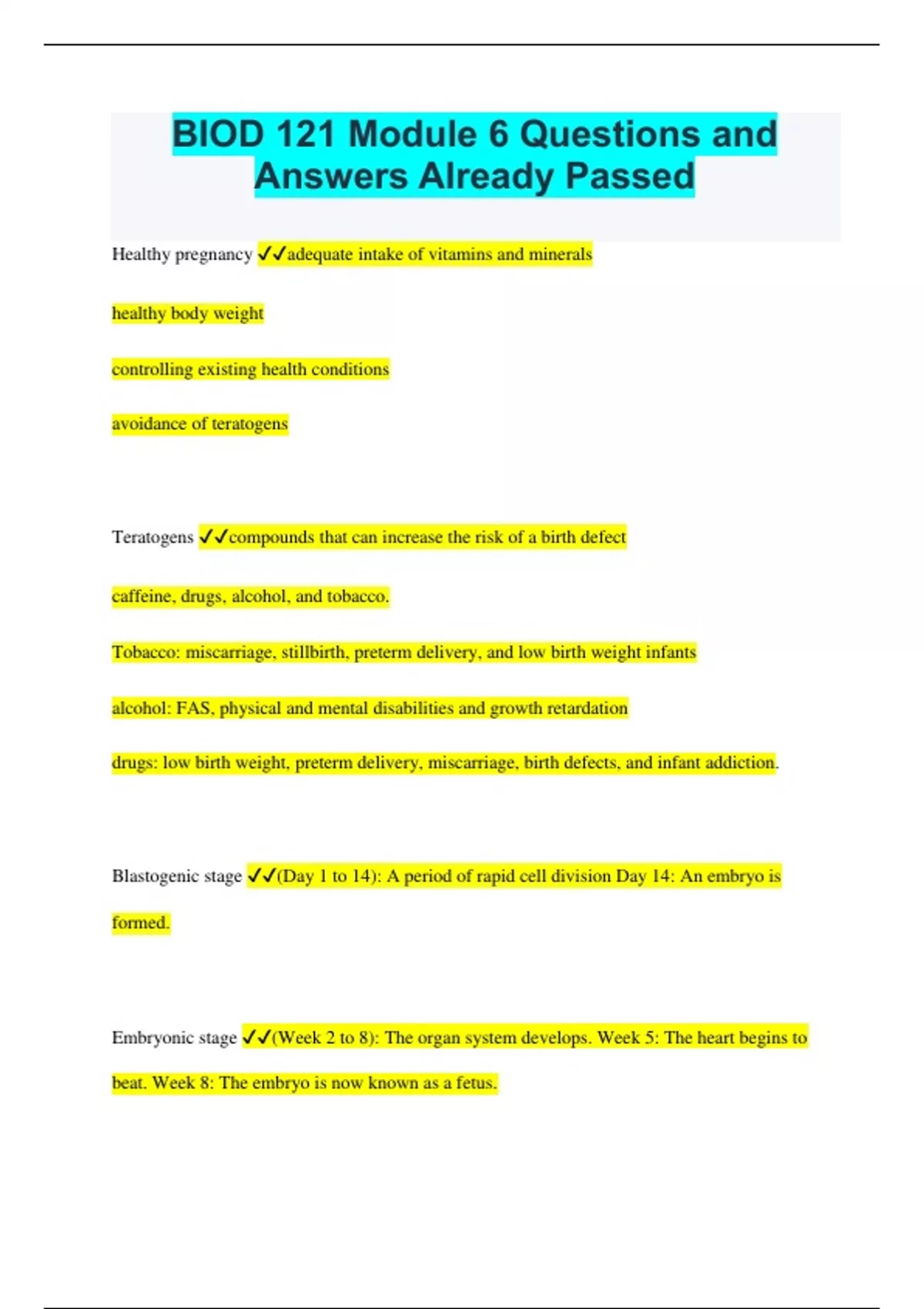 BIOD 121 Module 6 Questions and Answers Already Passed