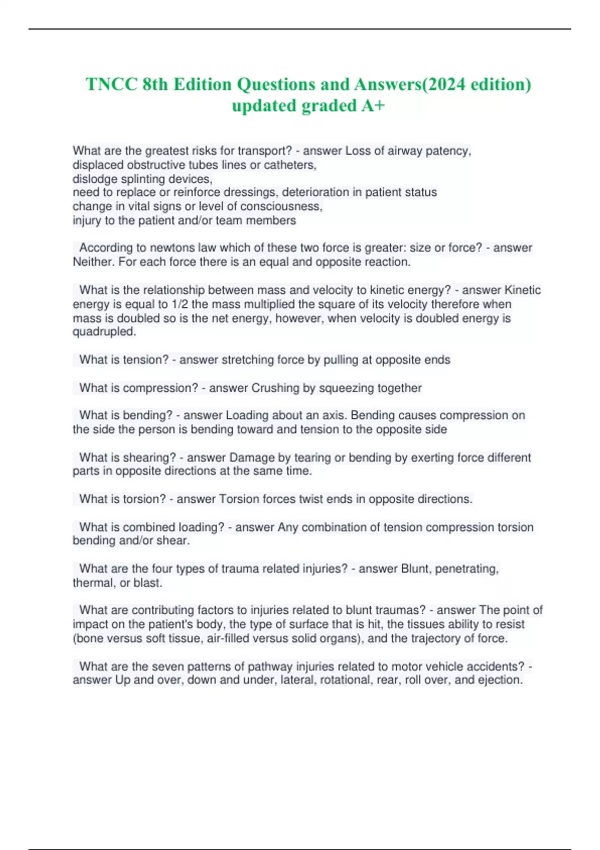 TNCC 8th Edition Questions and Answers-2024 edition graded A+