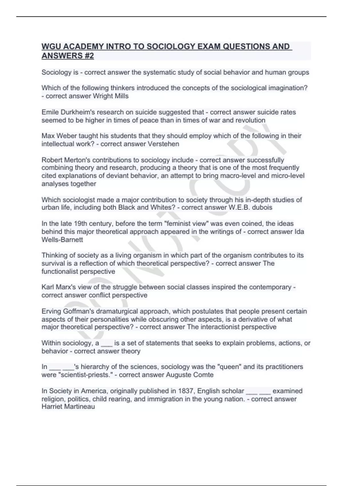 WGU ACADEMY INTRO TO SOCIOLOGY EXAM QUESTIONS AND ANSWERS #2