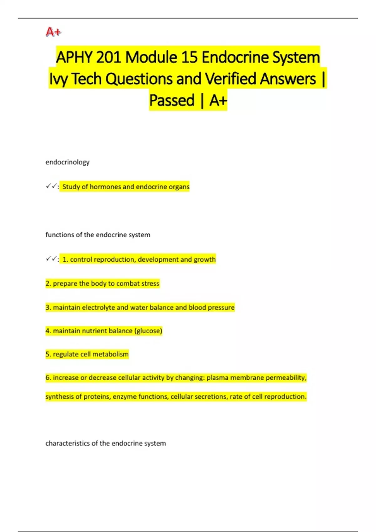 APHY 201 Module 15 Endocrine System Ivy Tech Questions and Verified Answers | Passed | A+