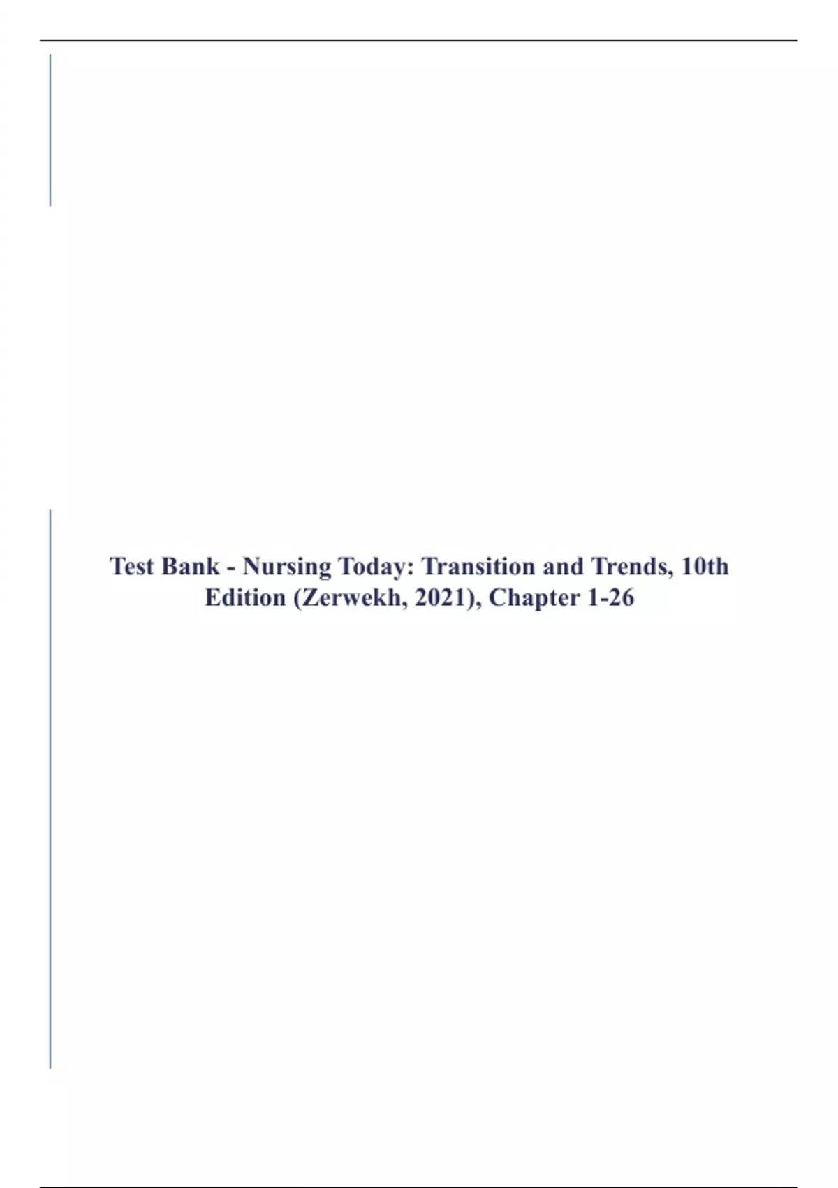 Test Bank - Nursing Today: Transition and Trends, 10th Edition (Zerwekh, 2021), Chapter 1-26